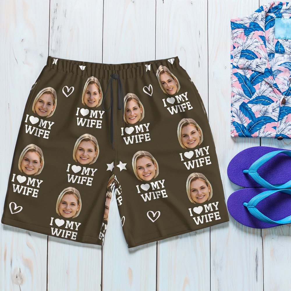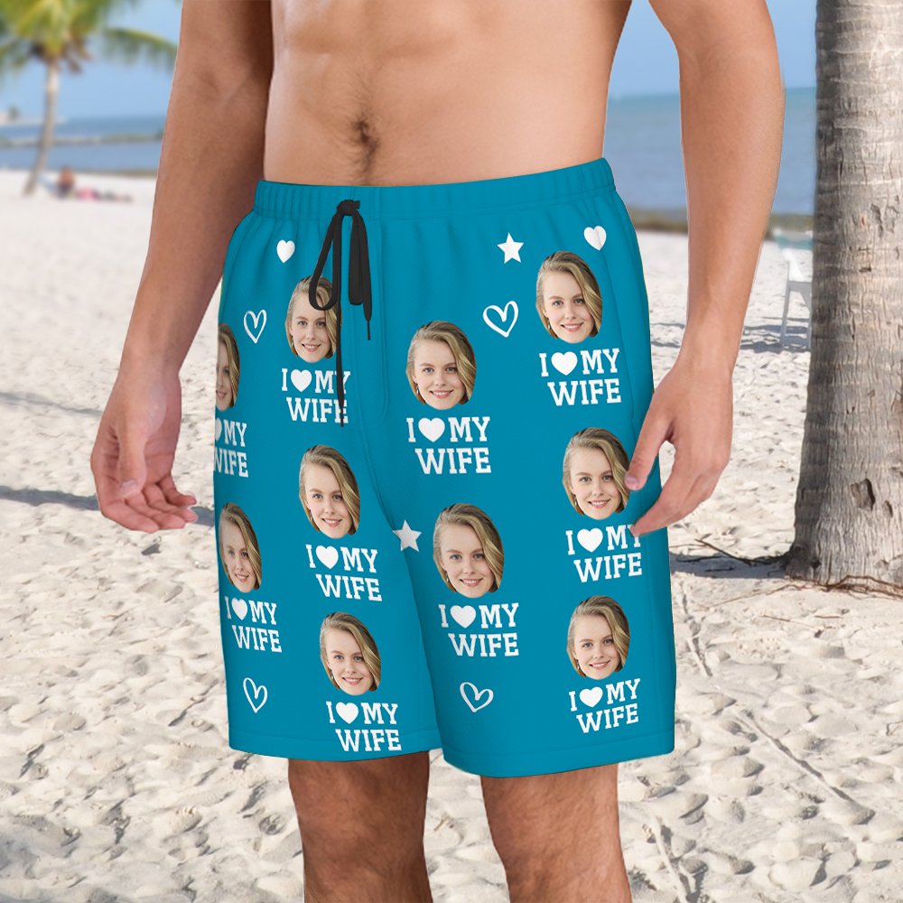 The beach swim shorts feature a funny and eye-catching design. You can customize the photo, and with the option of customizing the text "I β€ MY..." followed by a custom name, these shorts become a one-of-a-kind gift. They are not only practical but also make a fashion statement. The vibrant colours and unique patterns make you look stylish while enjoying beach activities. It's a great addition to your summer wardrobe, ensuring you look good and feel confident.