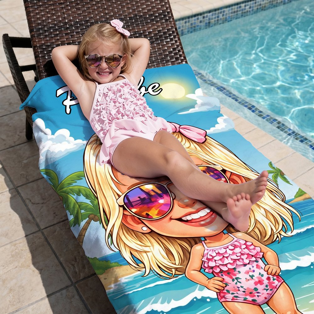 Drawing inspiration from American retro cartoons, the design transforms characters into brightly colored, simple, and Personalised cartoon patterns. These playful, eye-catching patterns set a unique tone. Choose from three different beach backgrounds, and customize each towel with your name to showcase your style and creativity.
