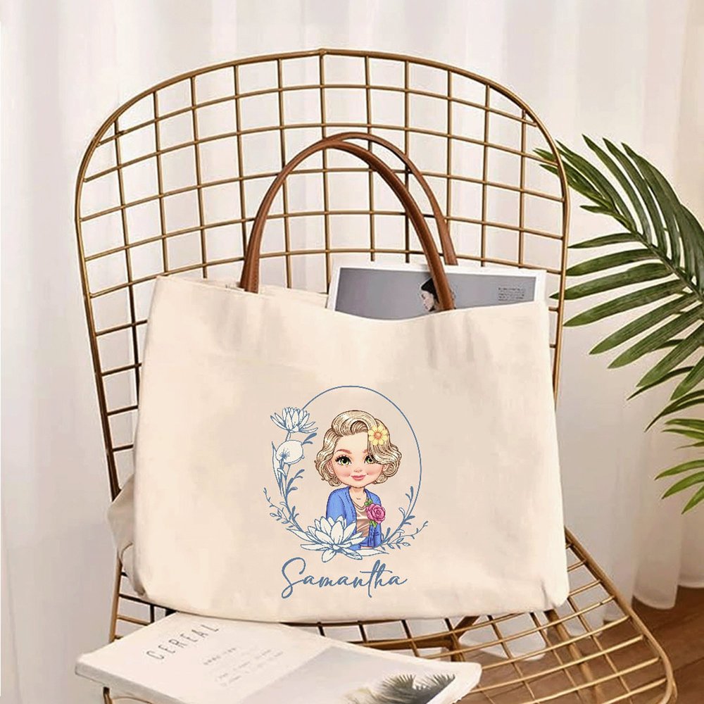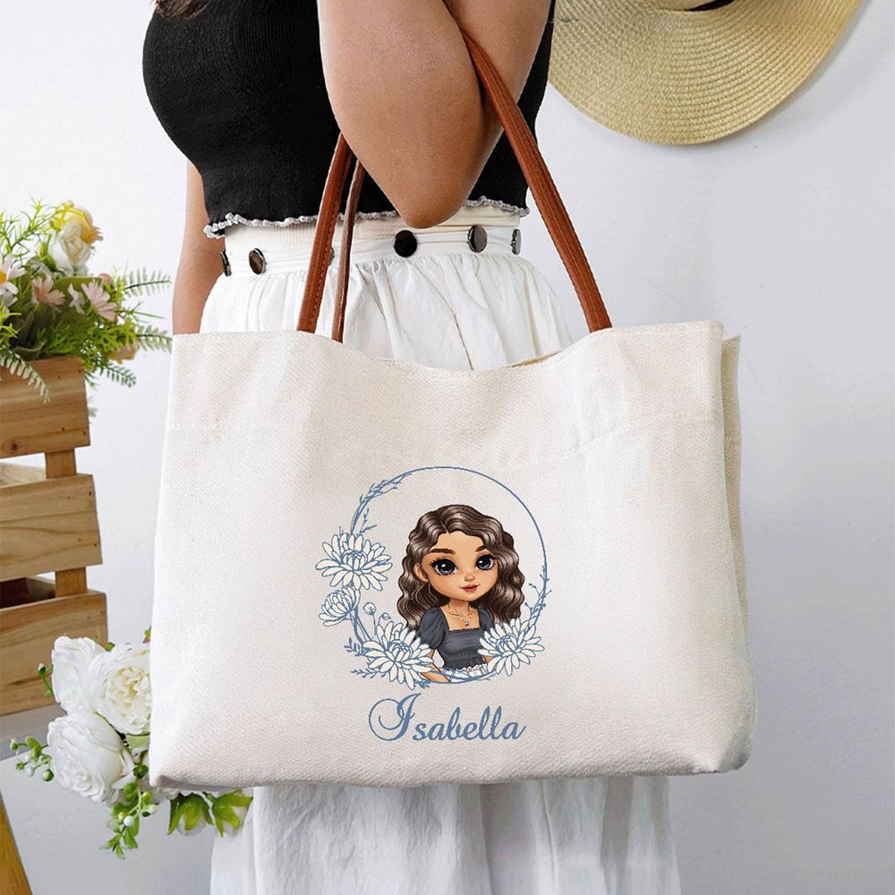 This tote bag features birth flowers and cartoon characters as its core design elements. The birth flowers are presented in an exquisite wreath design with delicate and flowing lines, showcasing the beauty of nature and artistic charm. Paired with characters and customized names, the overall design is both nostalgic and full of individuality and ingenuity. Every detail showcases a distinctive aesthetic, making the handbag a stylish and meaningful accessory.