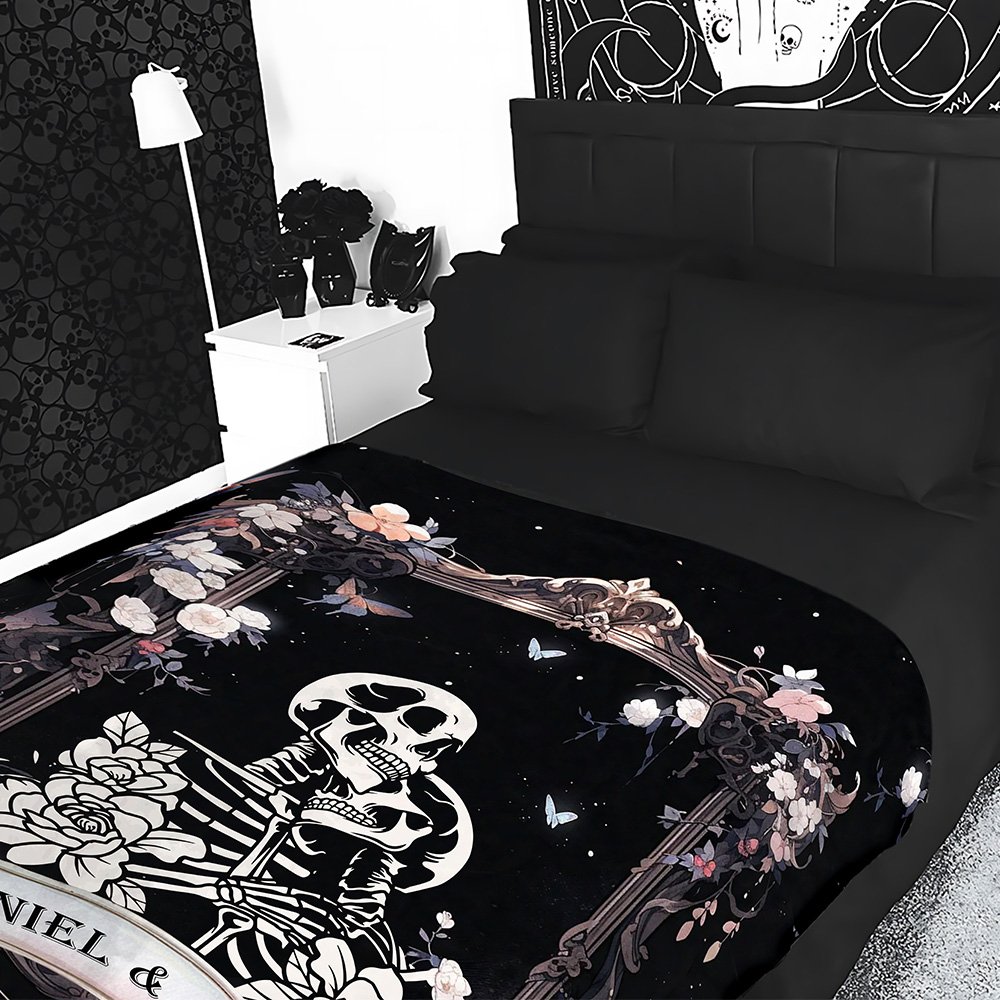This unique throw blanket features a captivating design that blends intricate skull motifs with delicate floral patterns, creating a perfect balance of macabre and beauty. The vintage-inspired artwork adds a touch of gothic elegance to any space, making it an ideal accent piece for those who appreciate dark aesthetics. The Personalised name option allows you to add a custom touch, making this throw a one-of-a-kind gothic statement.