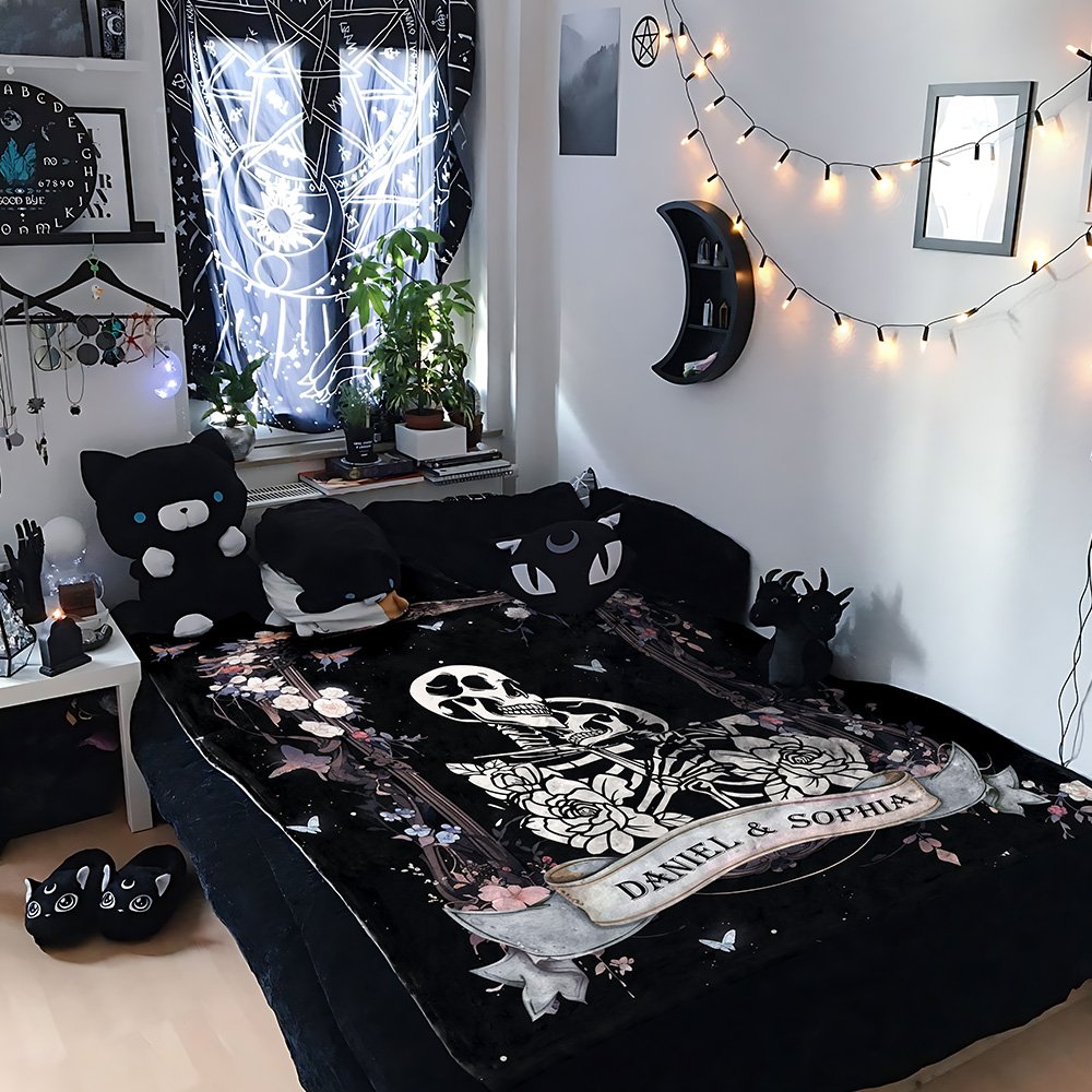 As a Halloween gift or a year-round present for gothic-style lovers, this Personalised throw offers a thoughtful and practical option. Its unique design and customization make it a standout gift that recipients will cherish. Whether for birthdays, holidays, or just because, this blanket will surely delight anyone with a penchant for gothic aesthetics.