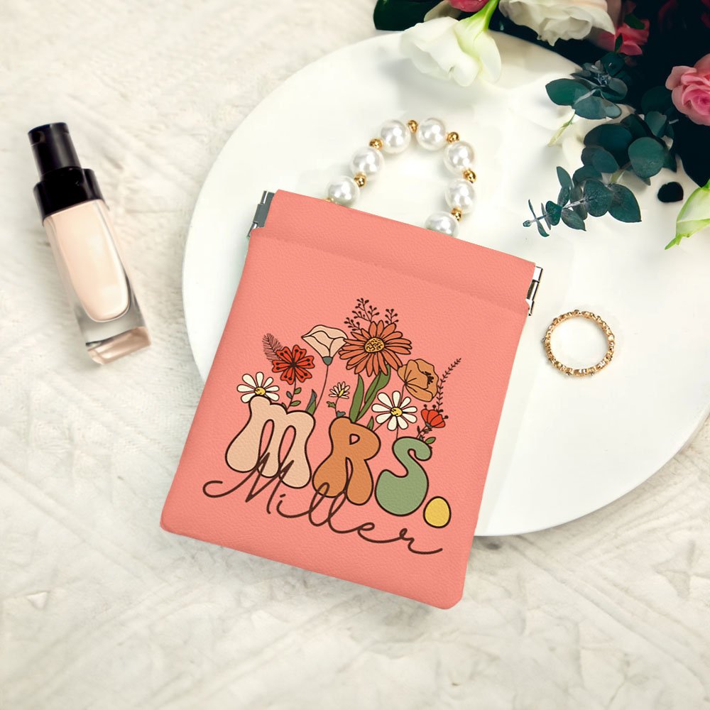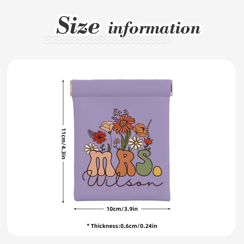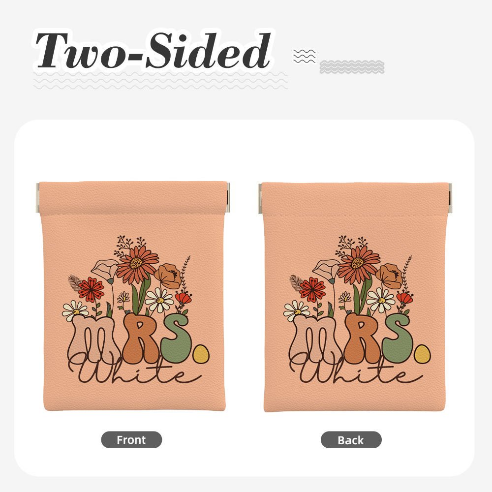 This exquisite storage bag's unique design is dominated by wildflower elements. The title "MRS." in the same color scheme complements each other to create a retro and elegant style. You can choose from up to 17 colors and add your name to make a unique accessory.