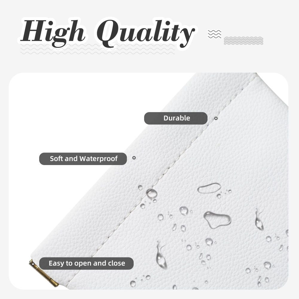 This storage bag is made of PU leather. Its waterproof leather surface is dust and stain-resistant and easy to clean, and its suede lining is scratch-resistant and rub-resistant. It is also equipped with a tungsten steel automatic-closing squeeze frame, which opens when you squeeze it and closes when you let go. This design ensures the safety of the items in the bag, making it an ideal keeper.