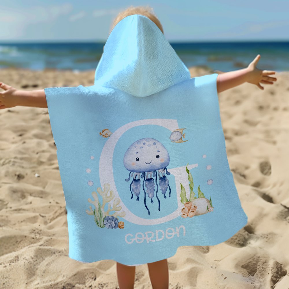 This children's hooded beach towel combines 10 unique sea animal patterns with bright colors and charming elements like corals and water plants. What's more, you can customize it with your child's name. With 10 colors to choose from, you can create a unique towel that stands out and is special for your little one.