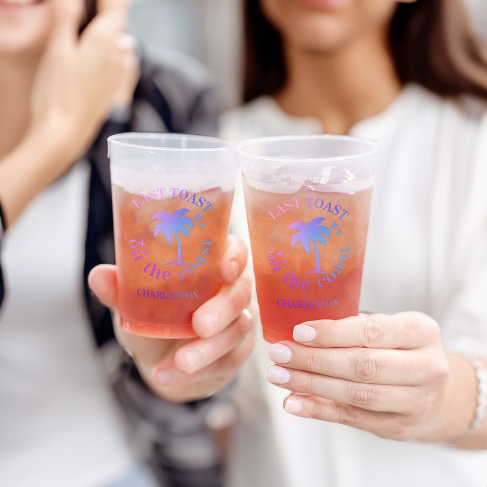 Designed with the catchy "Last Drink on the Shore" slogan, this plastic cup captures the spirit of coastal celebrations in an elegant and fun way. Choose from six patterns to create your perfect bachelorette party item.
