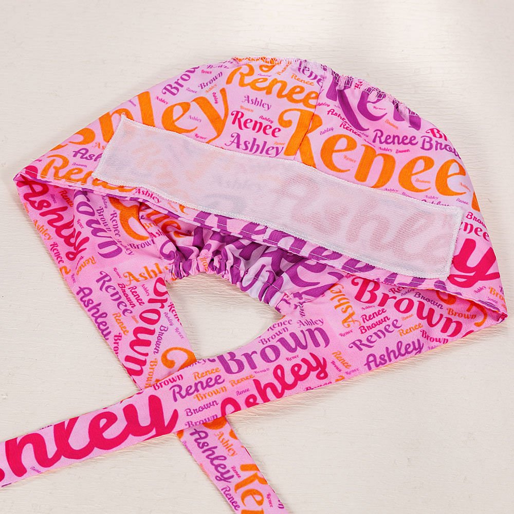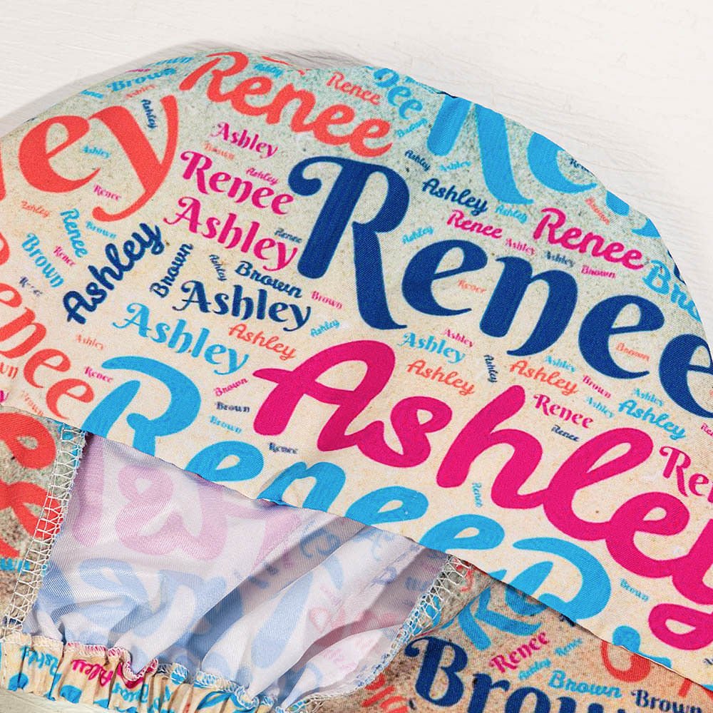 Our caps' design consists of colorful word clouds of names. We will combine your names in various font styles, colors, positions, etc. Moreover, our caps come in five vibrant colors for you to choose from, creating the most fashionable and ornamental work accessories.