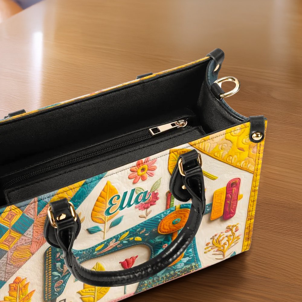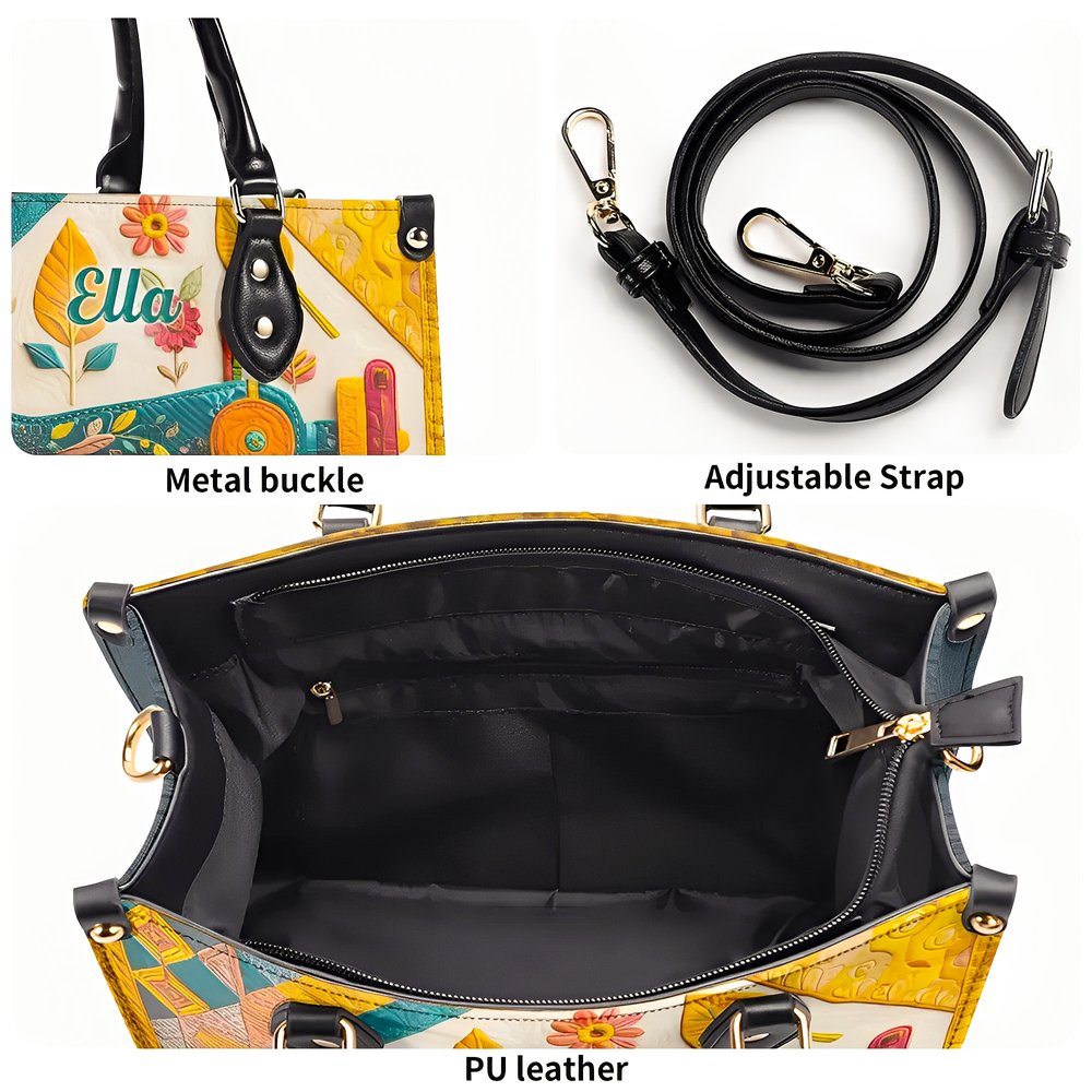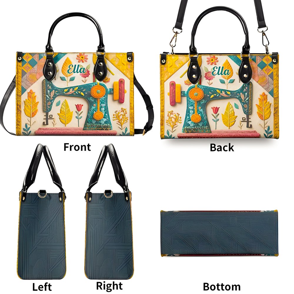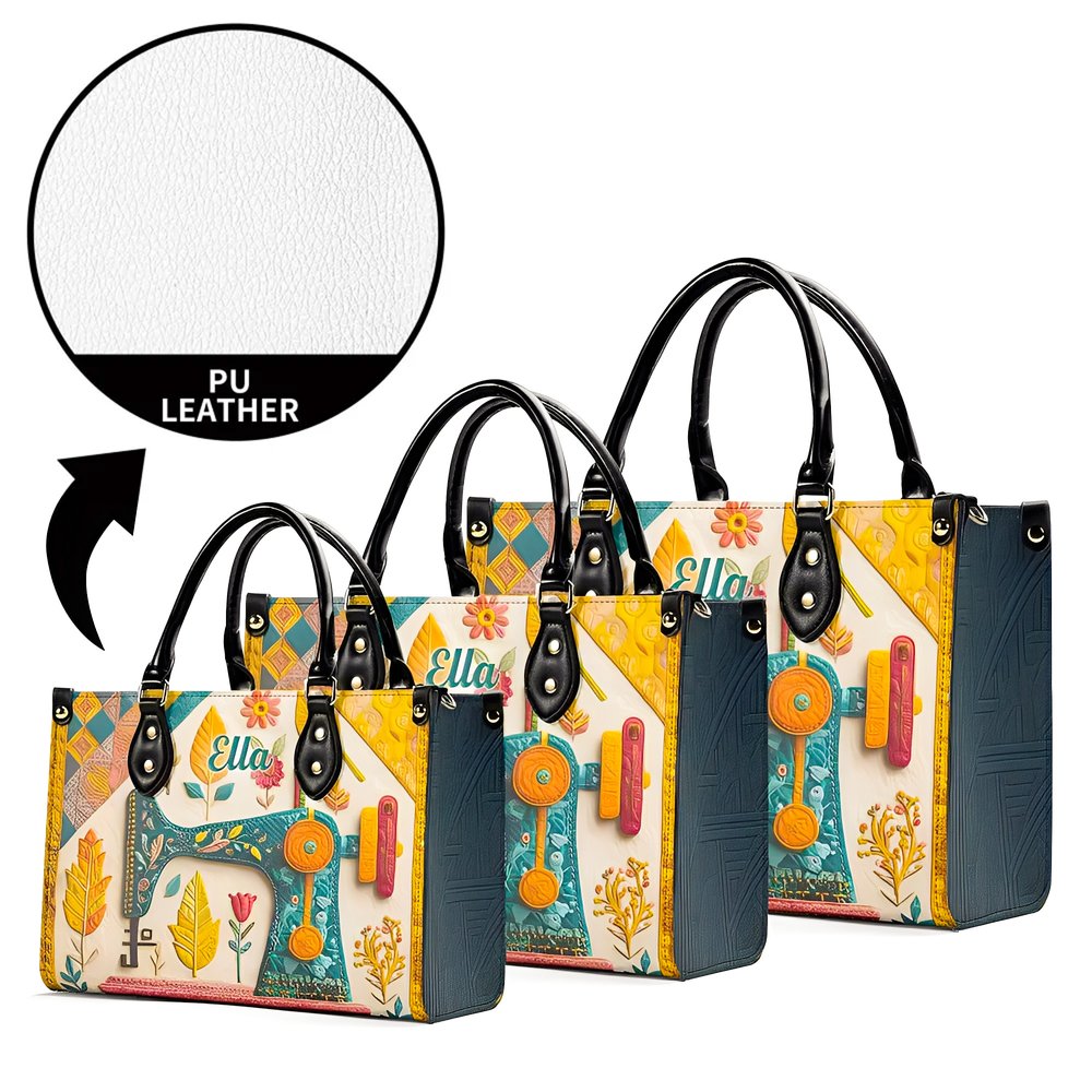 Personalised Sewing Machine PU Leather Large Tote Bag with Name and Shoulder Strap Birthday Gift for Woman Sewing Lover