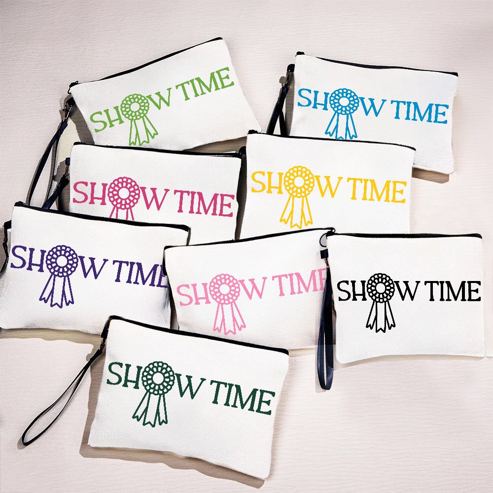 This makeup bag features the "SHOW TIME" equestrian slogan as its main design element, available in a variety of stylish color options. You can Personalise it with your name or a special message, making this makeup bag a truly unique item. Let every outing reflect your style and personality, showcasing your passion for equestrian activities wherever you go.