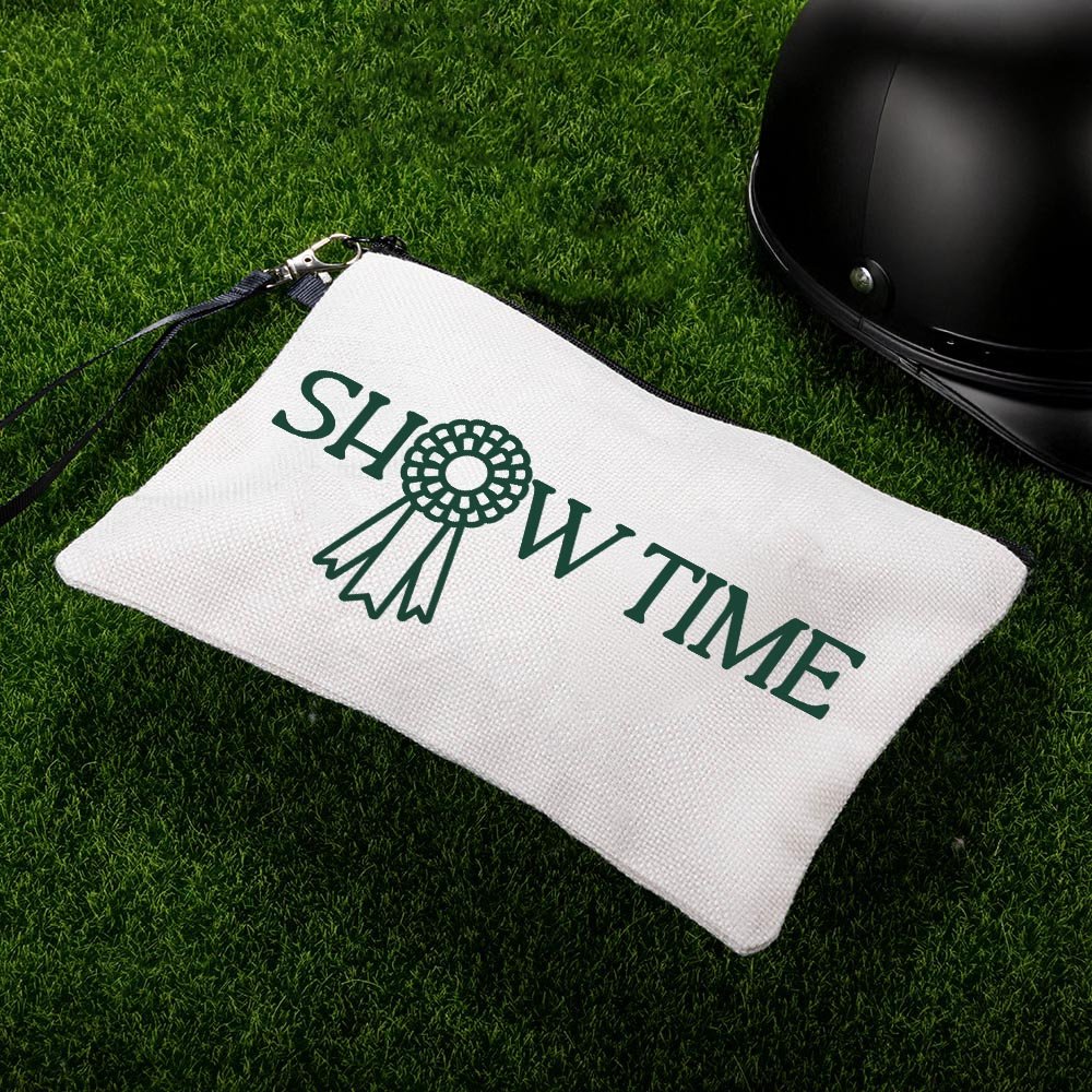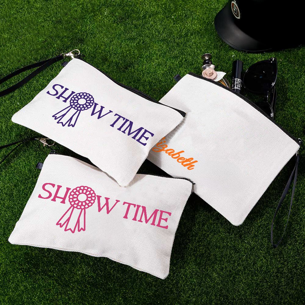 Personalised Show Time Horse Show Makeup Bag with Name Wristband Daily Travel Accessory Birthday Gift for Women Equestrian Enthusiasts