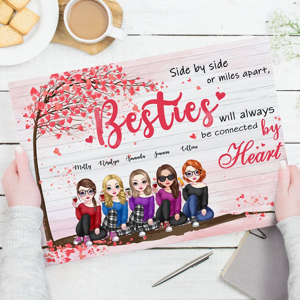 The unframed picture is beautifully printed with the words "Side By Side or Miles Apart, Besties Will Always Be Connected by Heart" to remind close friends of the good times they've had together.