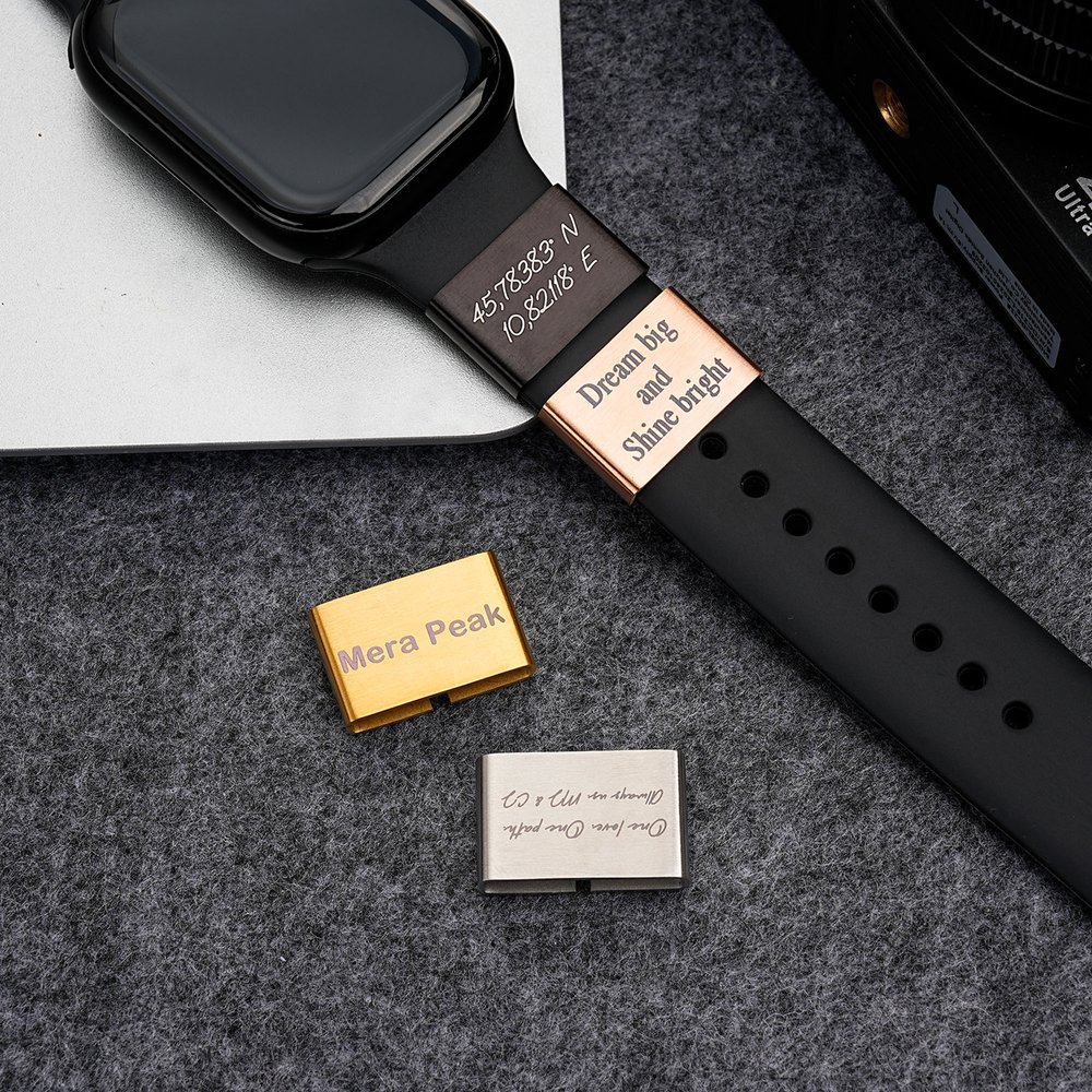 The sleek rectangular design, enhanced by exquisitely engraved text, adds a touch of refinement and modern flair to any watch, instantly elevating the wearer's overall style. It is also easy to install and quickly adds a Personalised accent to an everyday timepiece. Suitable for daily work, fitness activities, or casual occasions, it remains a reliable, eye-catching, and practical accessory.