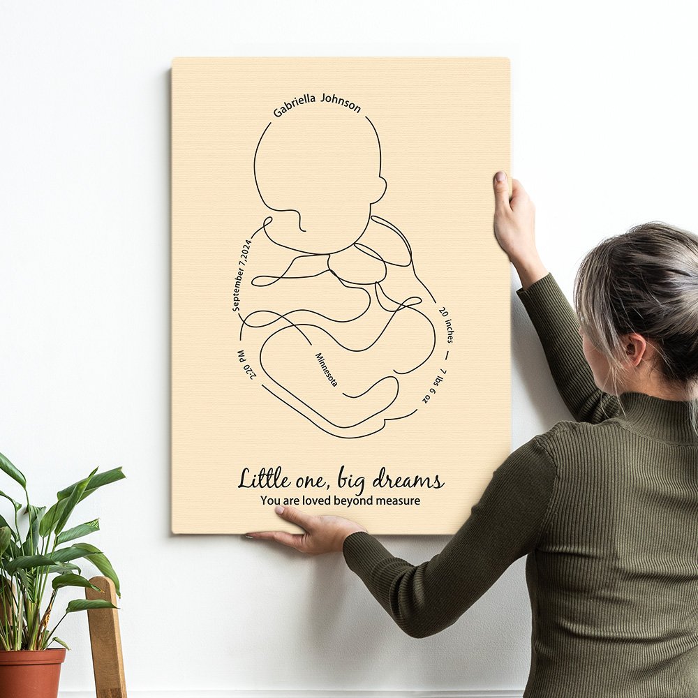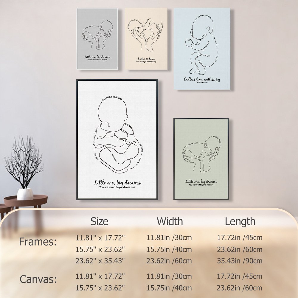 There are 9 cute baby line patterns for you to choose from, each of which is full of childlike fun and warmth. What's more gratifying is that you can Personalise your baby's name, birthday, height, weight, birth time, birthplace, and your blessing text for him, making this gift more unique and full of exclusive love.