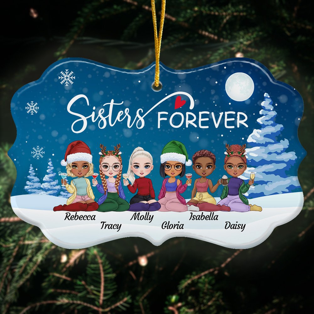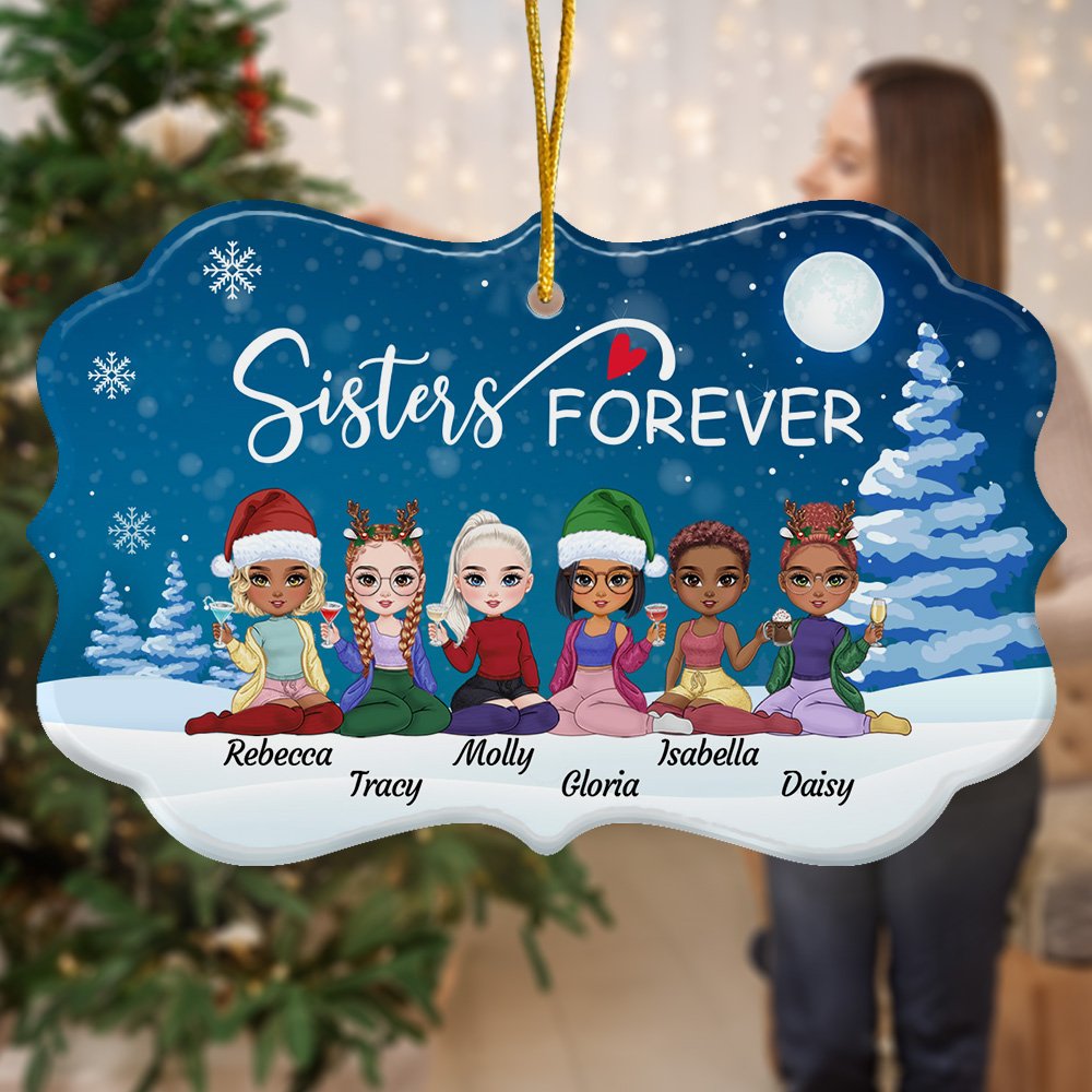 Uniquely designed, this ceramic pendant features a charming scene combined with a Christmas element that shows a heartwarming image of friends spending time together. With the addition of "Sisters Forever" and a Personalised message, it will be a special keepsake that celebrates the everlasting love between people.