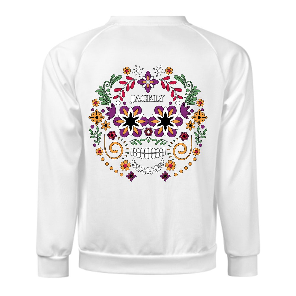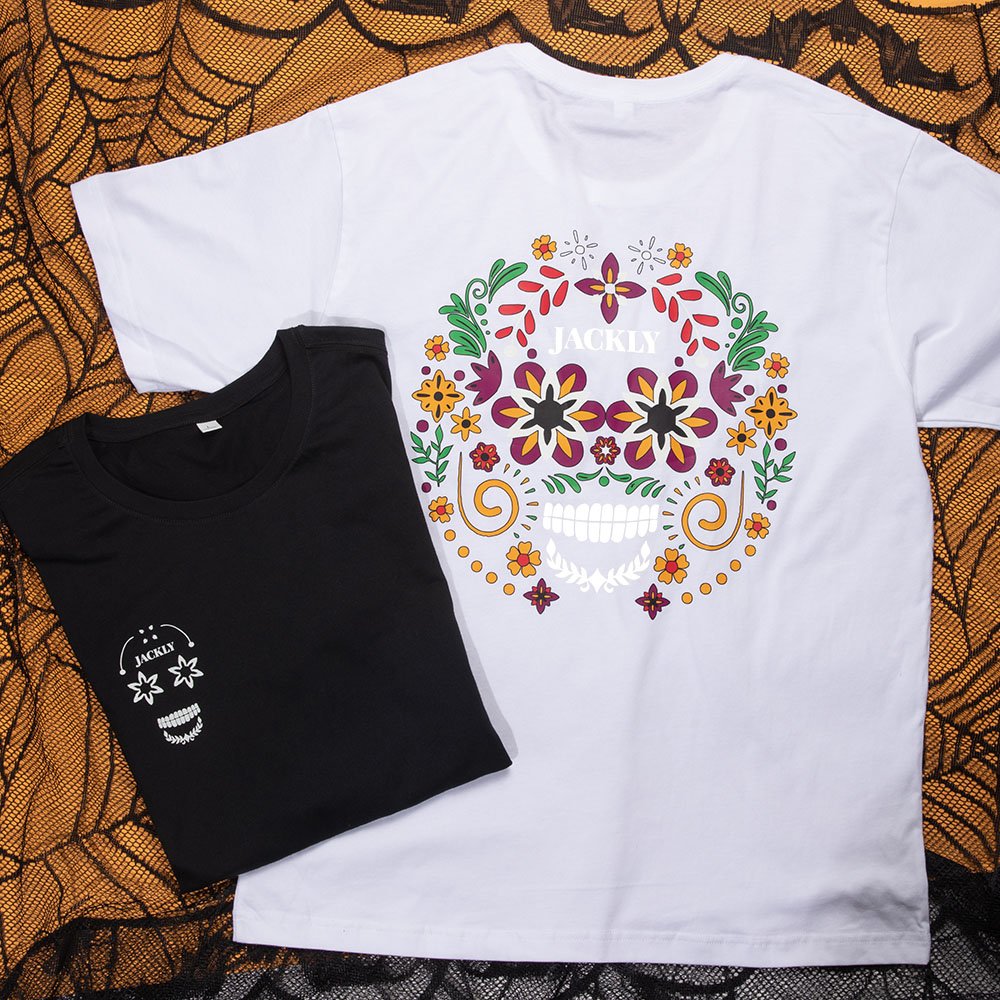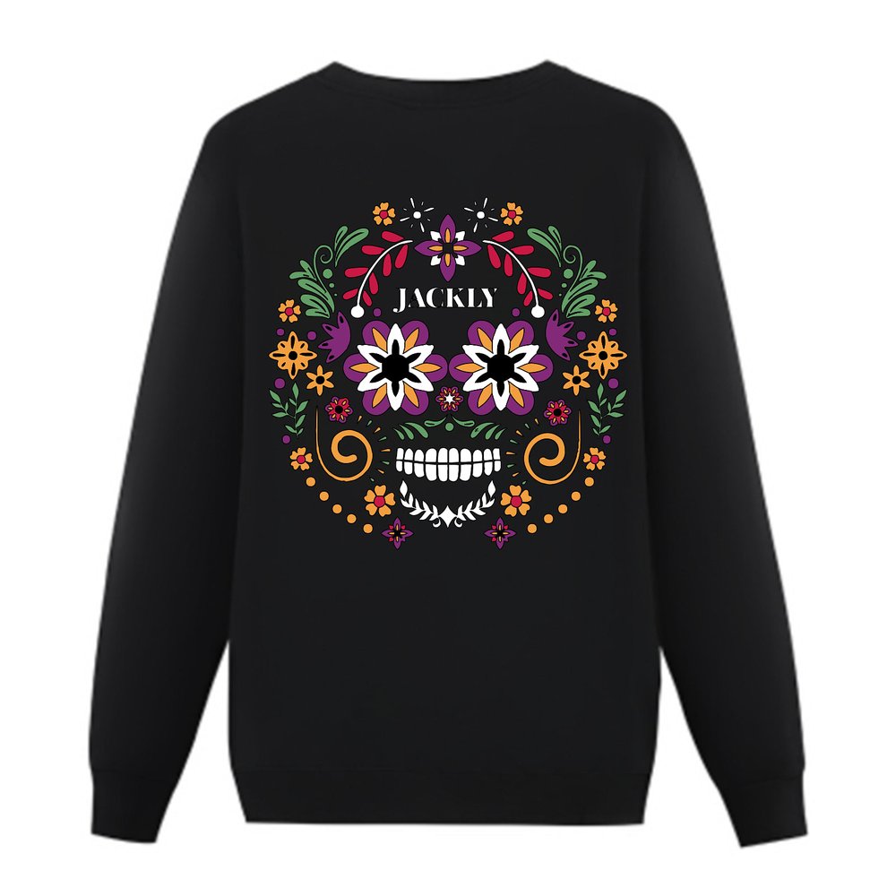Day of the Dead is a Mexican holiday that celebrates and honors deceased family members and friends. Skulls have a special significance in the meaning of Halloween, as they can signify death or danger, as well as a reminder of the brevity of human life and the certainty of death. The design on the t-shirt and sweatshirt is made up of various botanical elements that signify the diversity and beauty of life. By incorporating these elements into the design, we have created a garment that pays homage to this rich cultural tradition and embodies the spirit of Halloween.