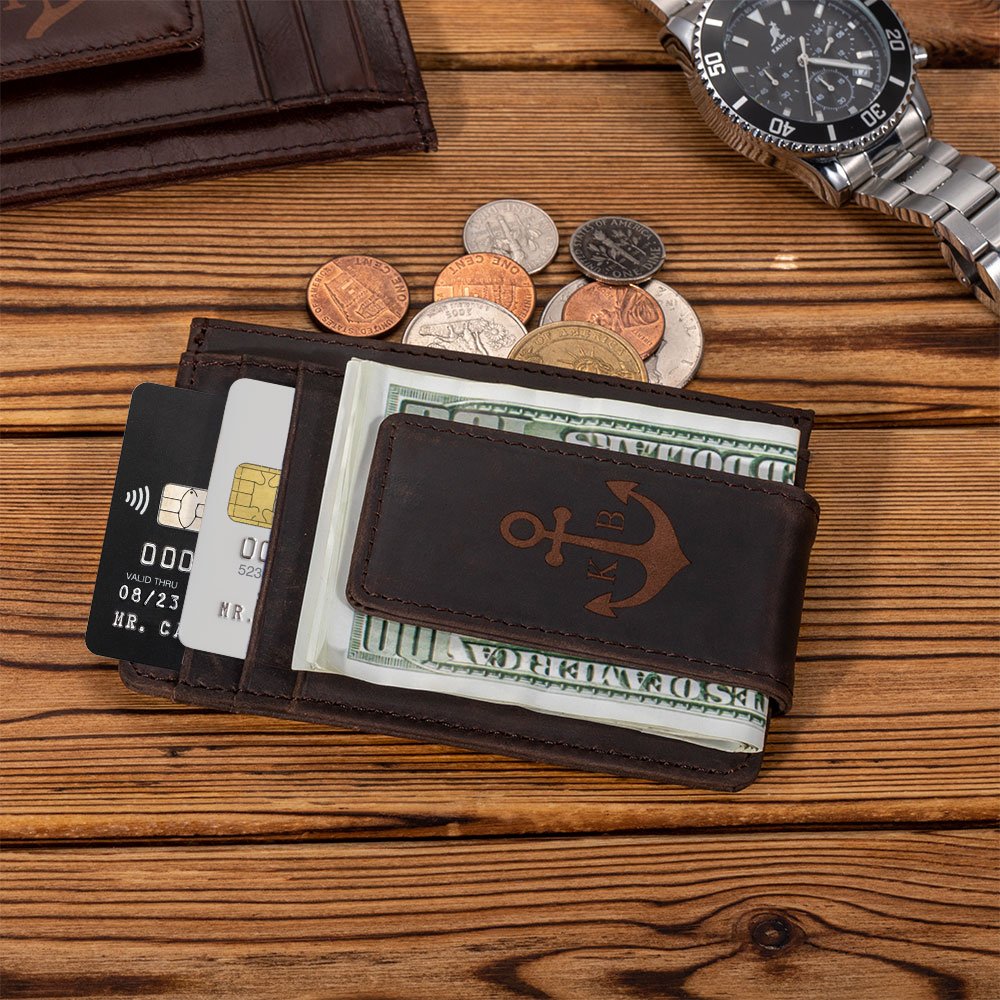 Our Personalised leather money clip is the perfect accessory for any man. Crafted from high-quality leather, this wallet features a sleek and slim design that easily fits into pockets without adding bulk.