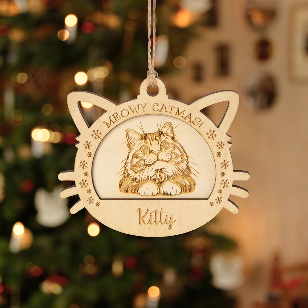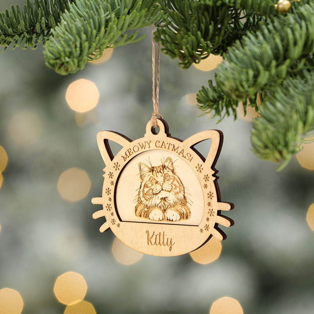 With a cat theme, this ornament perfectly captures pet lovers' love for cats. The image and name of the pet can be customized on the ornament, making each ornament a unique piece of art.