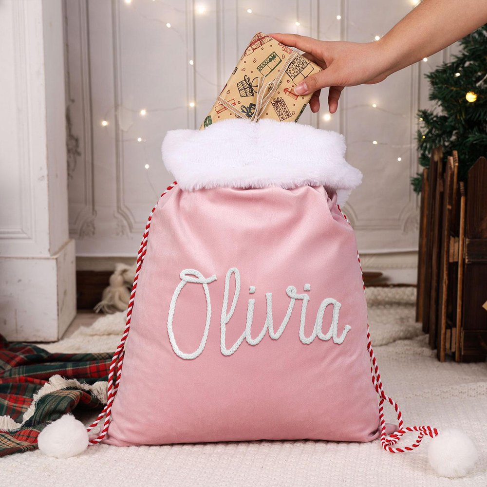 This Santa Claus gift bag beautifully blends classic holiday elements with Personalised touches, adorned with an elegant fuzzy pom-pom to create a warm and cozy festive visual experience. Each bag can be customized with the recipient’s name, making it a special holiday keepsake for the whole family.