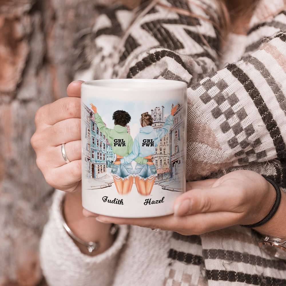 If you are still trying to figure out what gift you can give your bestie on their birthday, our bestie-themed customizable mugs might be the best option for you. The white mug's body is printed with two adorable girls and friendship quotes. You can customize the image and name of the girl to make it an unforgettable souvenir between you and your best friend. You will definitely make your best girl friend feel your love with this mug. It will leave her with cherished memories that will last a lifetime.