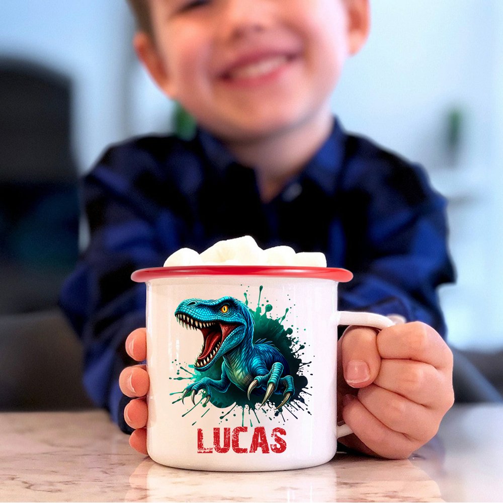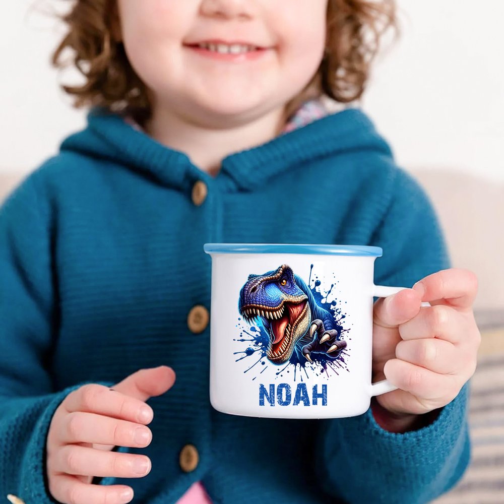 Design Your Favorite Dinosaur and Make Every Sip Special - Personalised 12 oz Name Enamel Mug