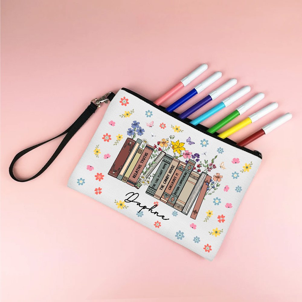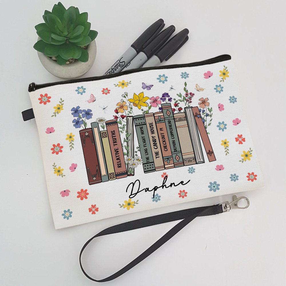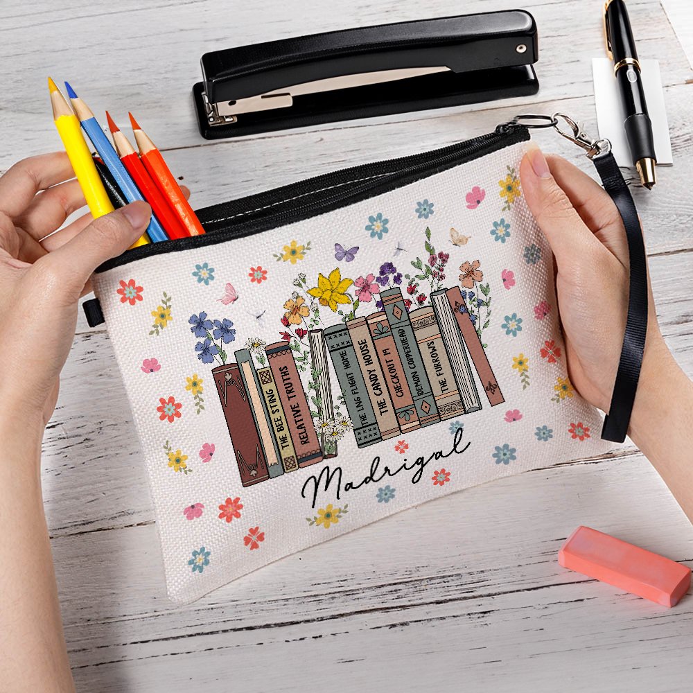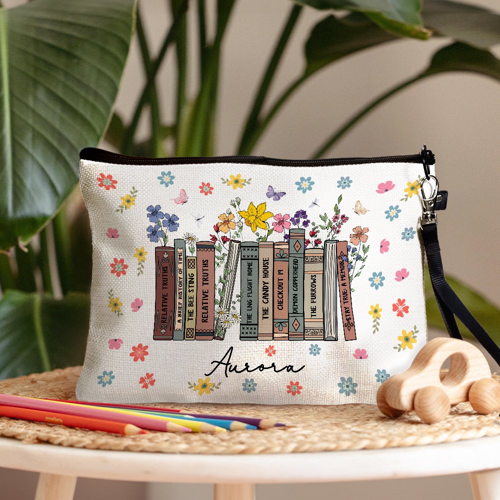 This pencil case features a delightful combination of books and wildflowers, exuding a fresh and clean aesthetic that reflects a love for books and reading. Personalise it with book titles and a name for an extra special touch.