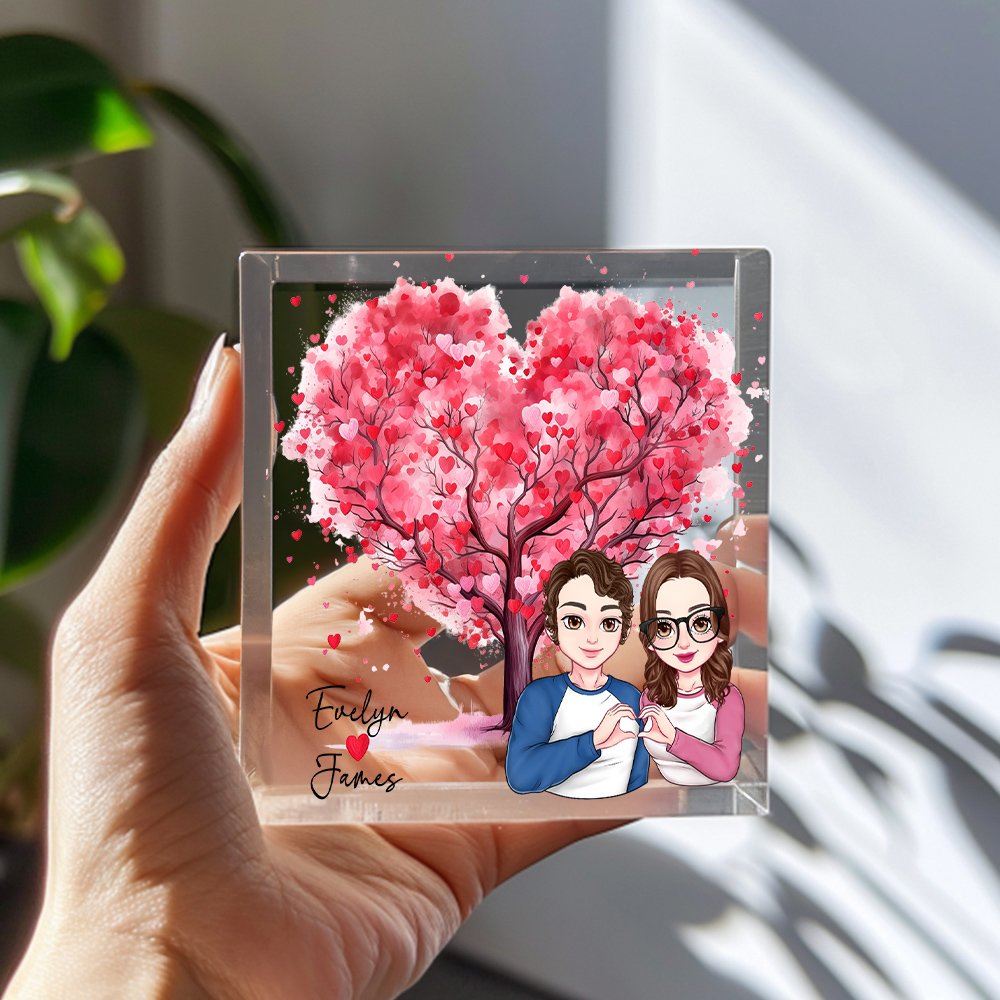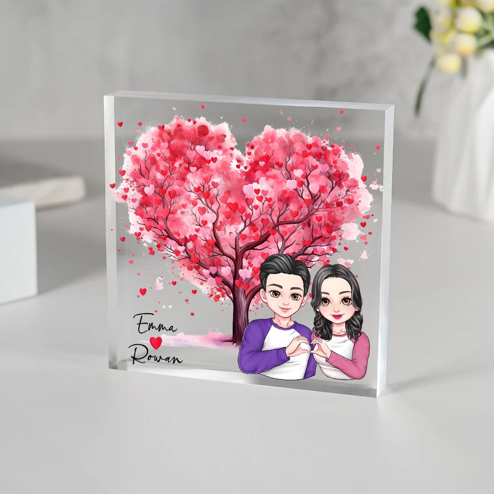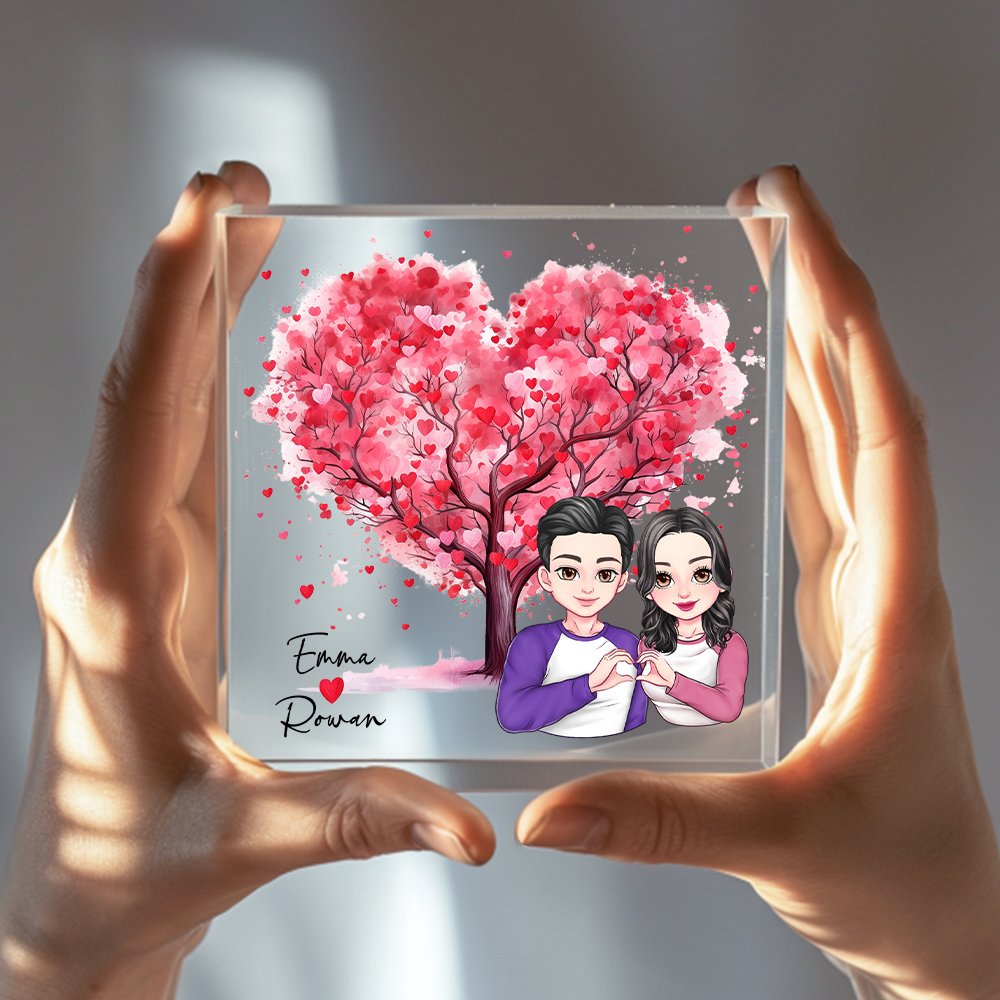 This charming ornament features a Personalised comparison cartoon character against a pink heart-shaped tree background, while also allowing you to customize everything from hair color to top color and name. This is a heartfelt way to celebrate your relationship and create a unique and unique decoration.