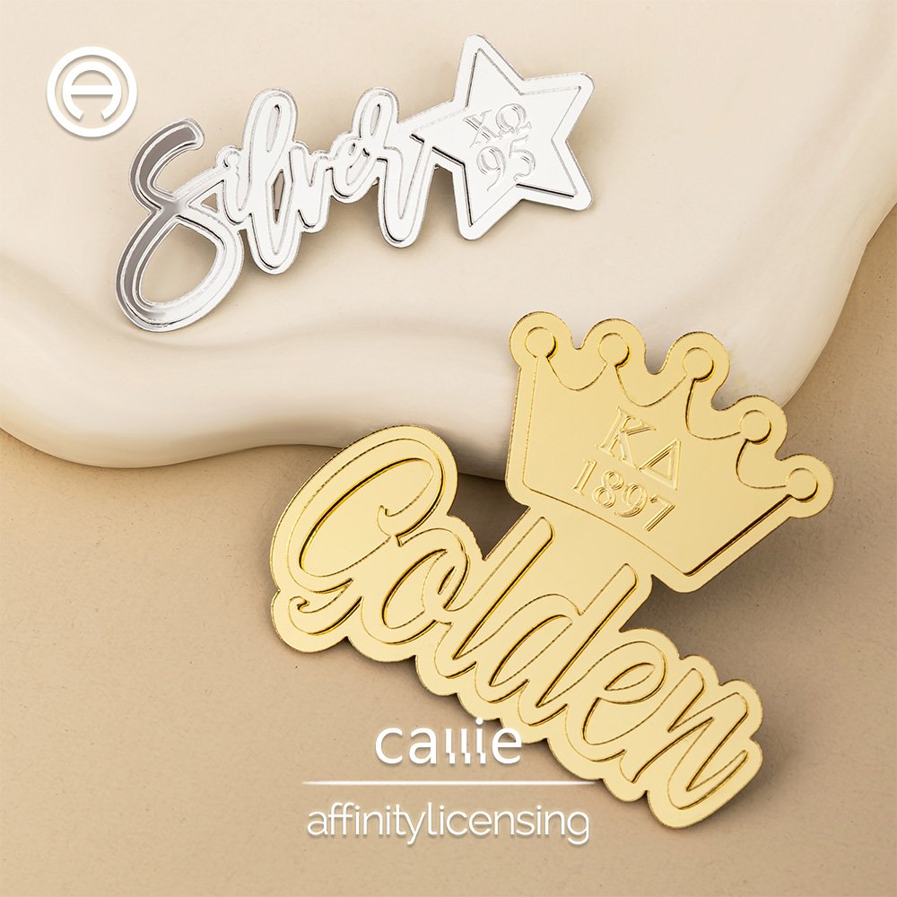 This sorority badge is available in two styles: 25-year silver and 50-year gold, to commemorate the sisterhood of different years. The silver badge features a star pattern, representing 25 years of glorious history, while the gold badge features a crown pattern, symbolizing 50 years of honor and dignity. Both badges can also be customized with sorority names to show the identity and pride of members.