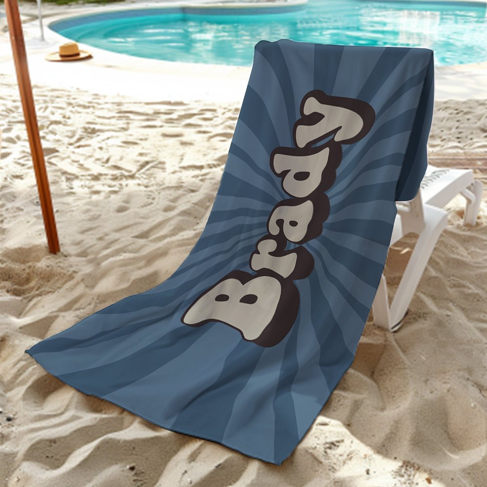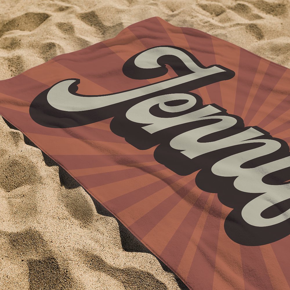 The Personalised name on the towel is beautifully showcased with the retro font option and bright colors. Stand out from the crowd with a towel that not only represents your unique identity but also catches everyone's attention. It's a true statement piece! You can choose from a range of colors to Personalise the towel and make it truly unique.