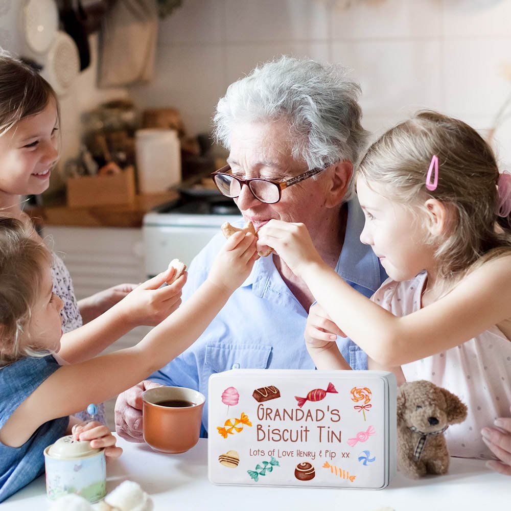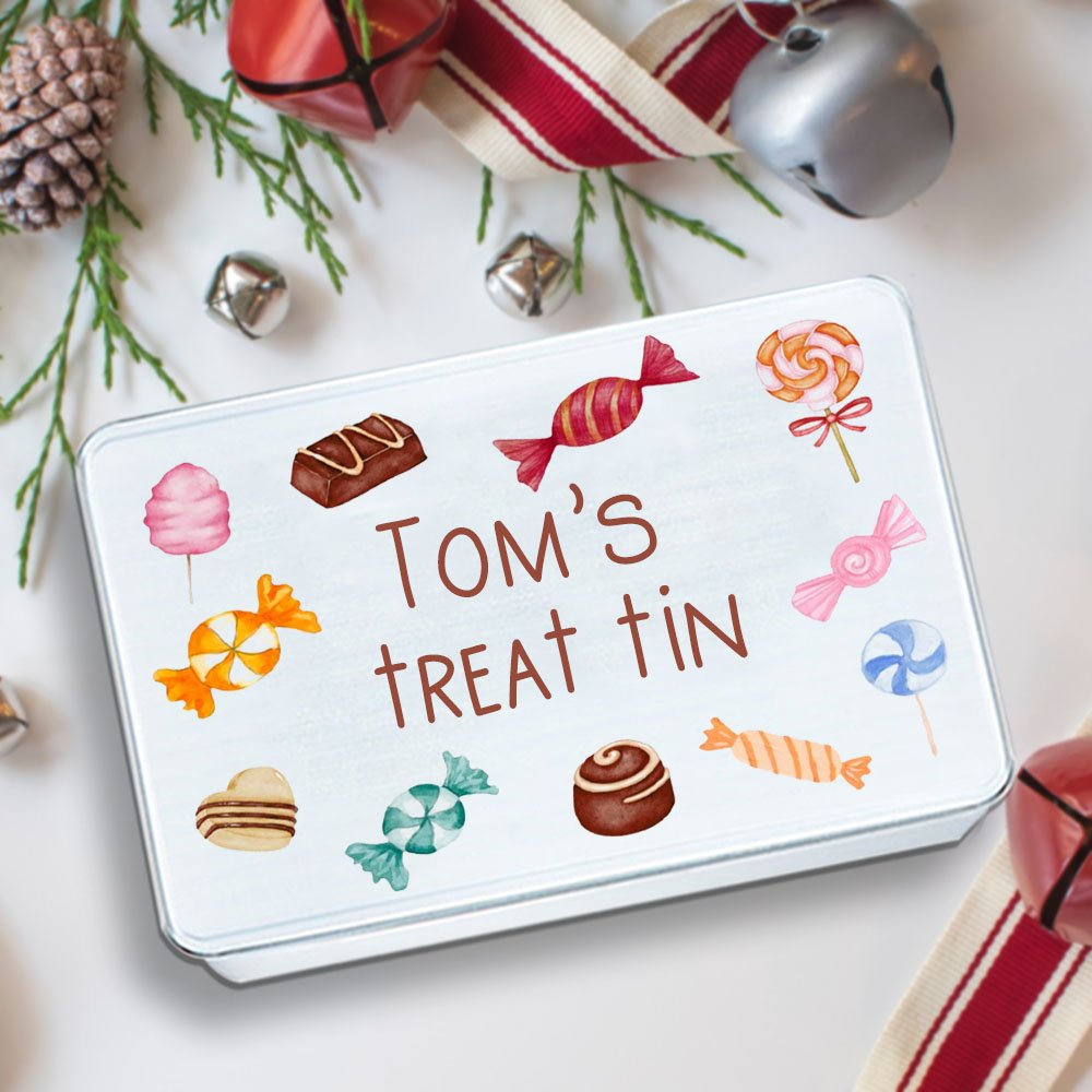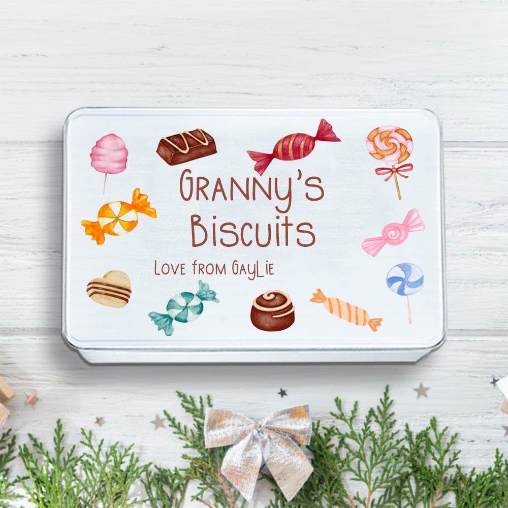 Share your sweets or desserts with your family and friends with this cute Personalised sweet box treat tin, which can be used to add a joyful atmosphere and express your care, and sincere love when a group of people are reunited together, and can also be displayed as a decorative ornament in your home.