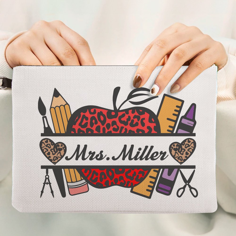 Personalised Teacher Makeup Bag Pencil Case Portable Leopard Pencil Pouch Teacher Appreciation Thank You Gift End of School Back to School Gift