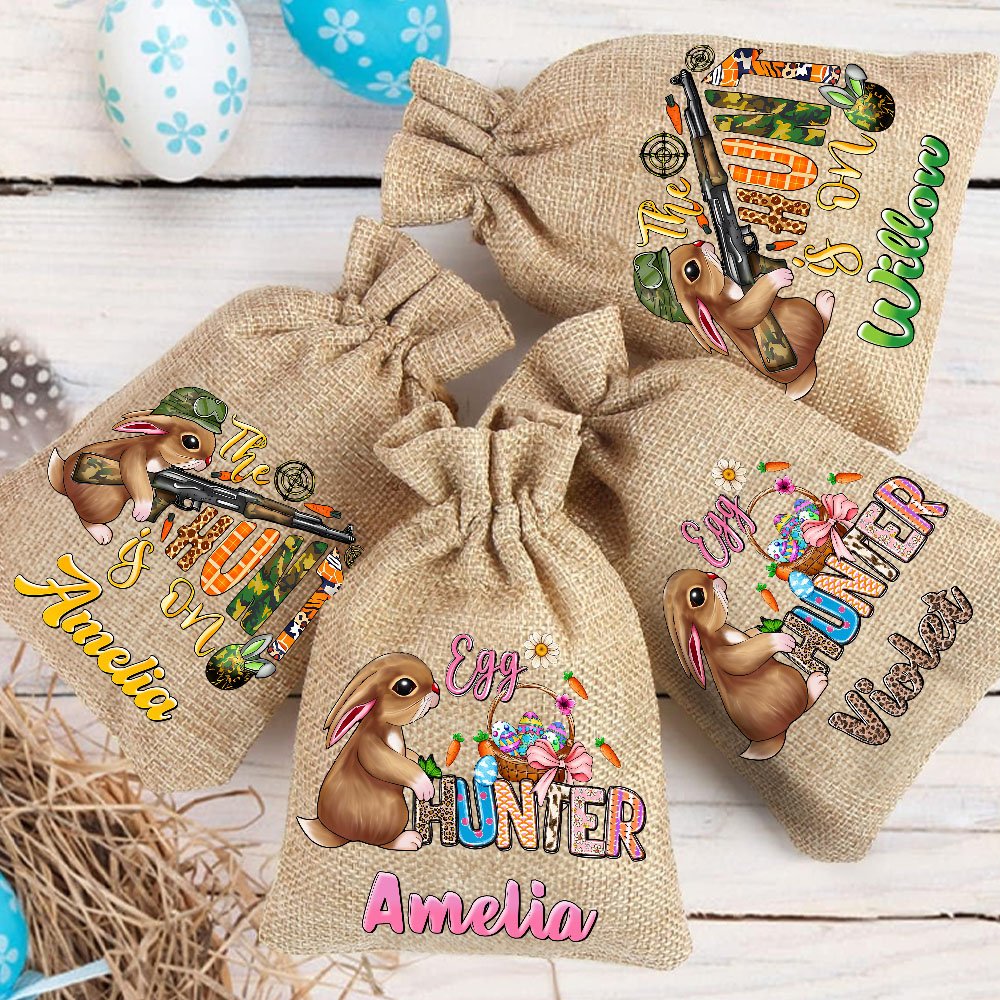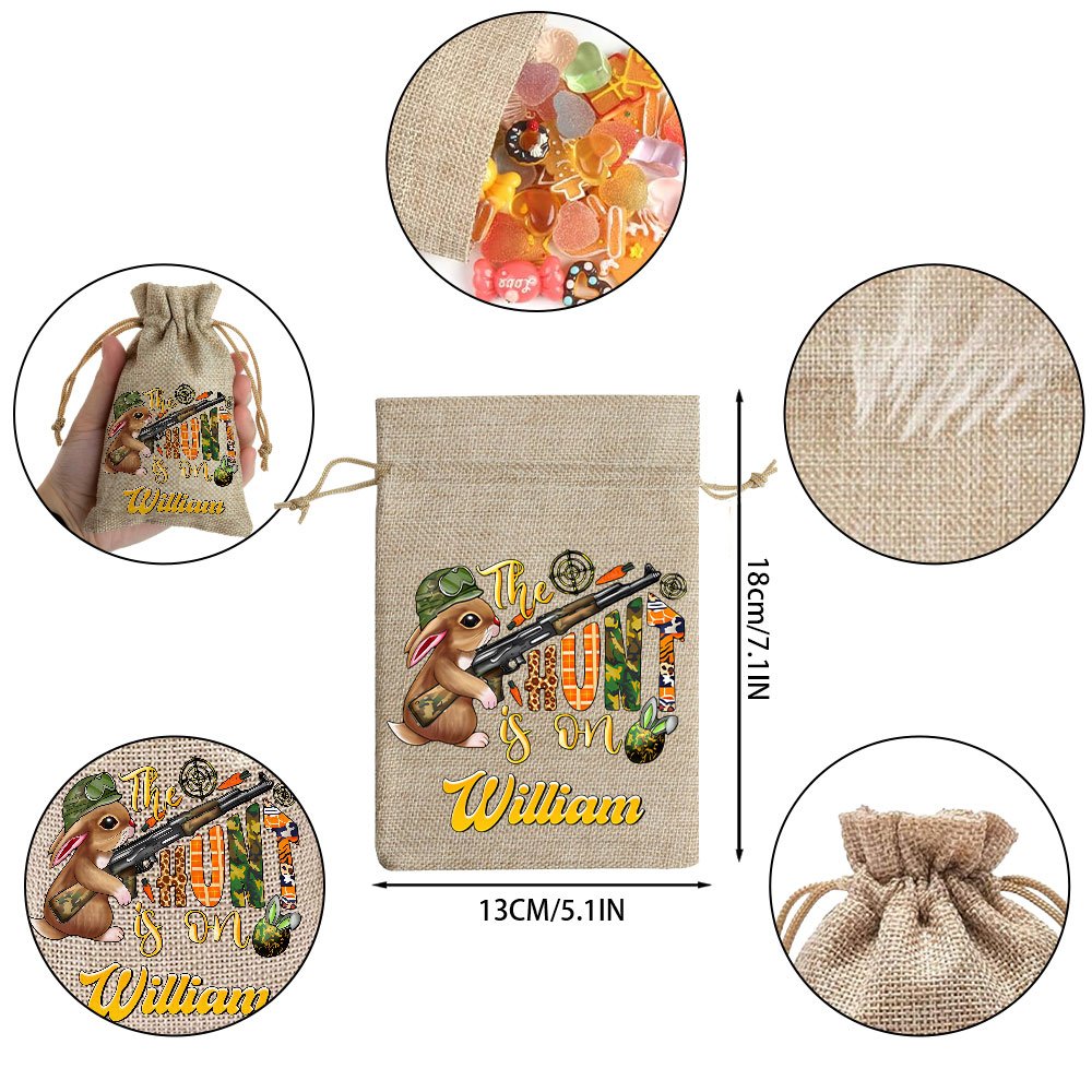 The rabbit pattern on the drawstring sack captures the joyful spirit of Easter. "The Hunt Is On" is printed on the bag. There are also two theme styles, camouflage theme, and pink theme, for everyone to choose from. Adding a festive touch to any Easter event or party. What's more, Personalised name options make each bag unique.