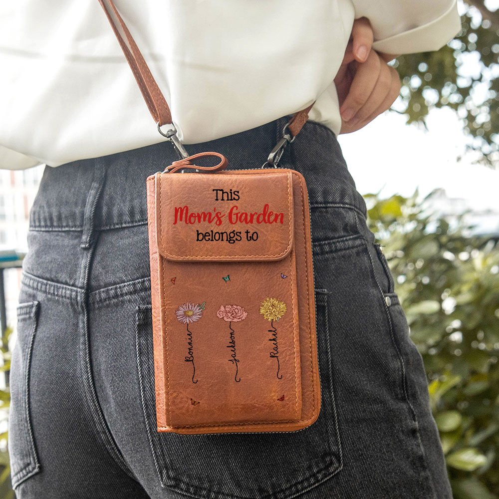 Personalised This Belongs To 1-12 Birth Flowers PU Leather Crossbody Bag Wallet with Names and Card Slots Mother's Day Birthday Gift for Mom Grandma
