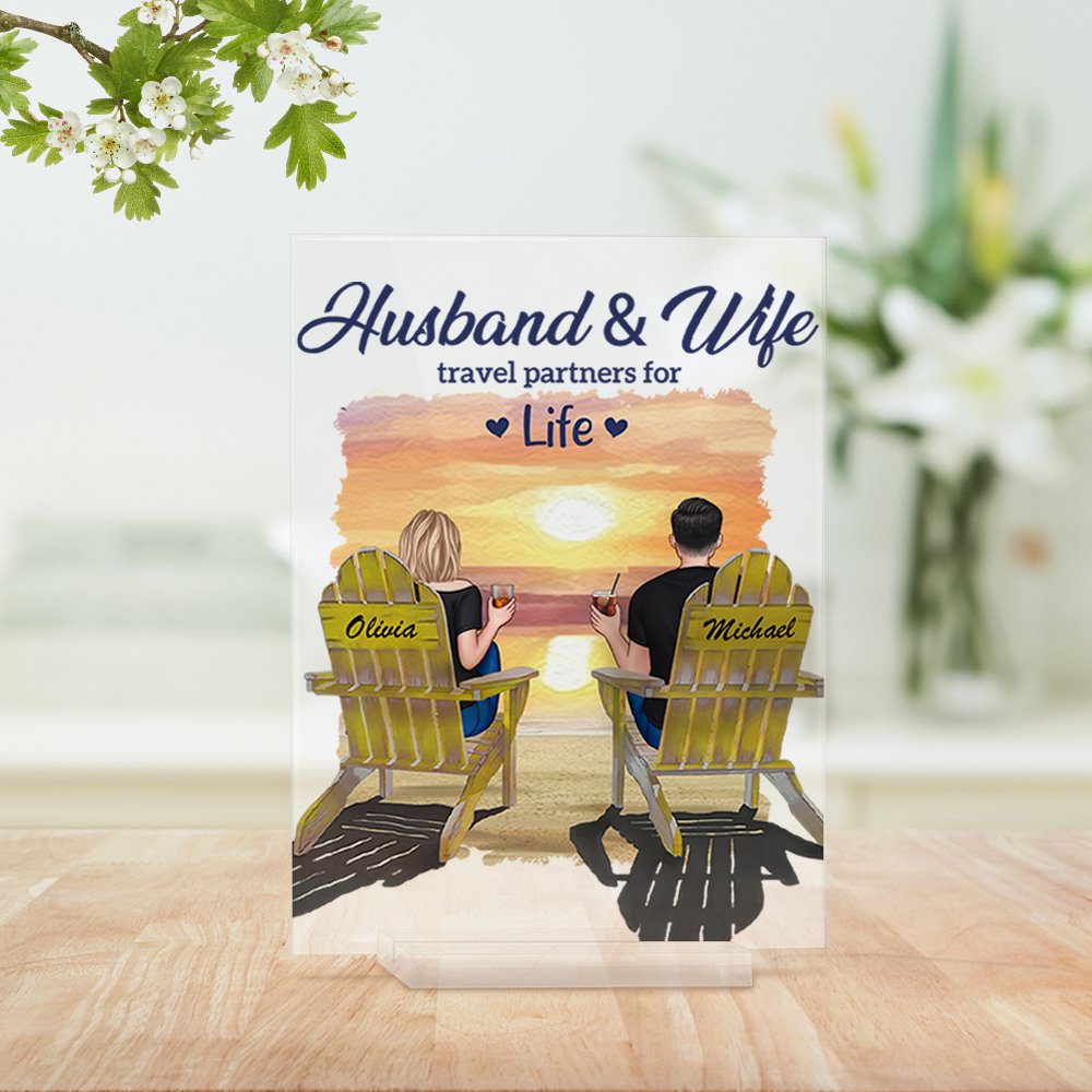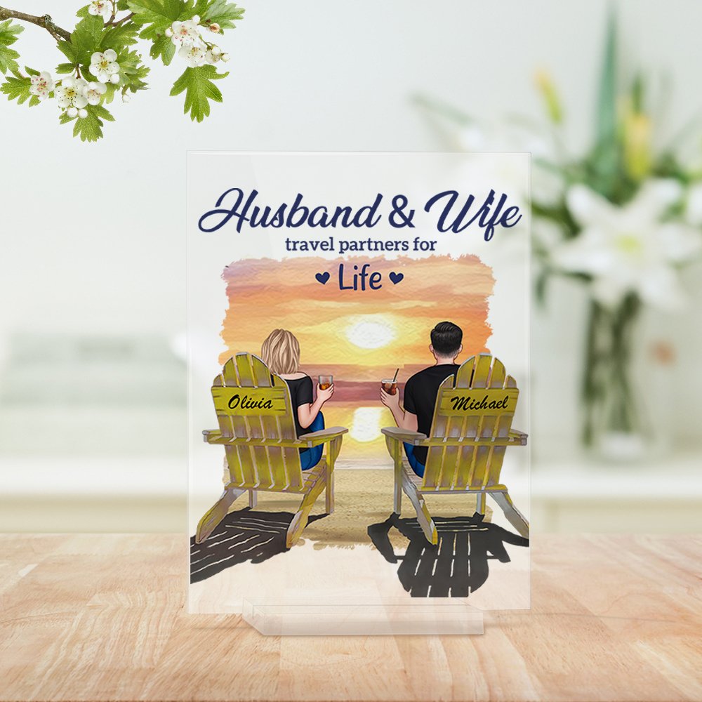 Personalised This Couple on Beach Chairs Design Husband and Wife Travel Partners for Life Acrylic Plaque Valentine's Day Gift House Decorations