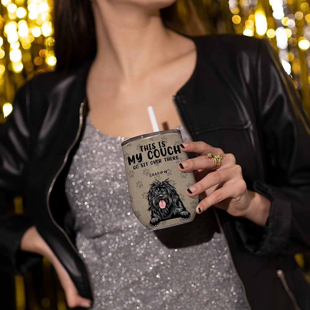 This wine tumbler is adorned with an irresistibly cute cat and dog pattern and the funny quote "This Is My/Our Couch Go Sit Over There", making it a must-have for anyone who adores their furry companions. The charming design is sure to bring a smile to the face of any pet lover, adding a touch of whimsy to their daily routine.