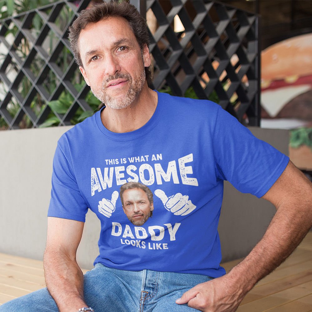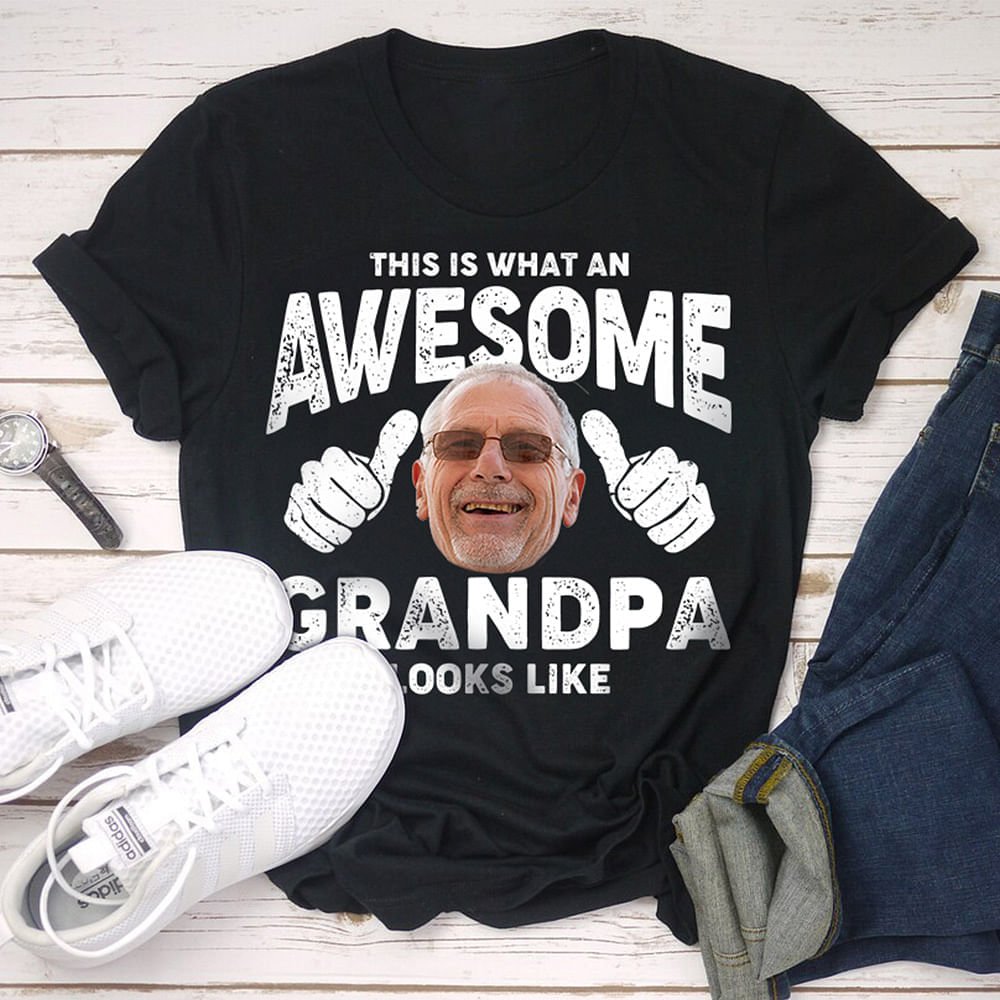 This T-shirt features the playful and bold phrase "This Is What An Awesome Grandpa Looks Like," making it a fun and unique t-shirt for dads. You can Personalise it with a photo and title, adding a special touch that celebrates your dad or grandpa's awesomeness memorably.