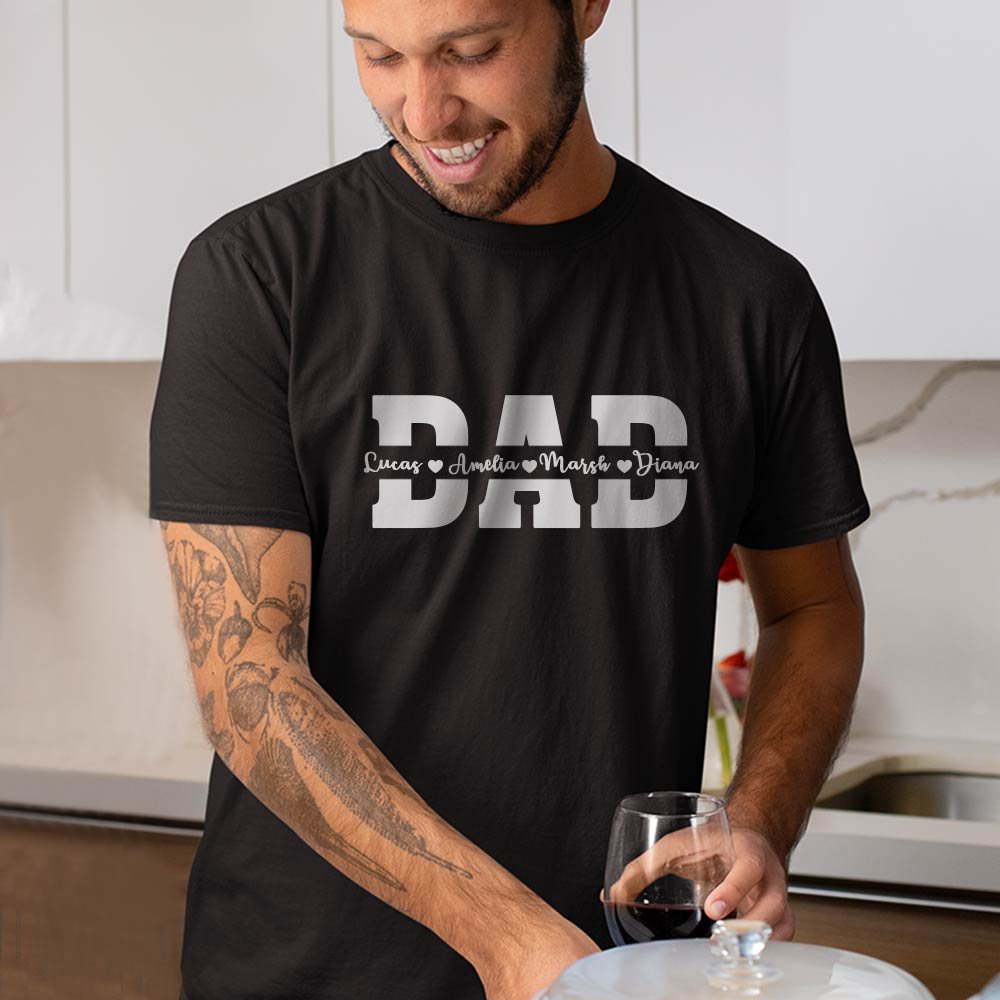 This T-shirt uses the design of the American flag, combining text with the flag style. The child's name can also be added to the clothes. It also shows the bond between a father and his child and commemorates American Independence Day.