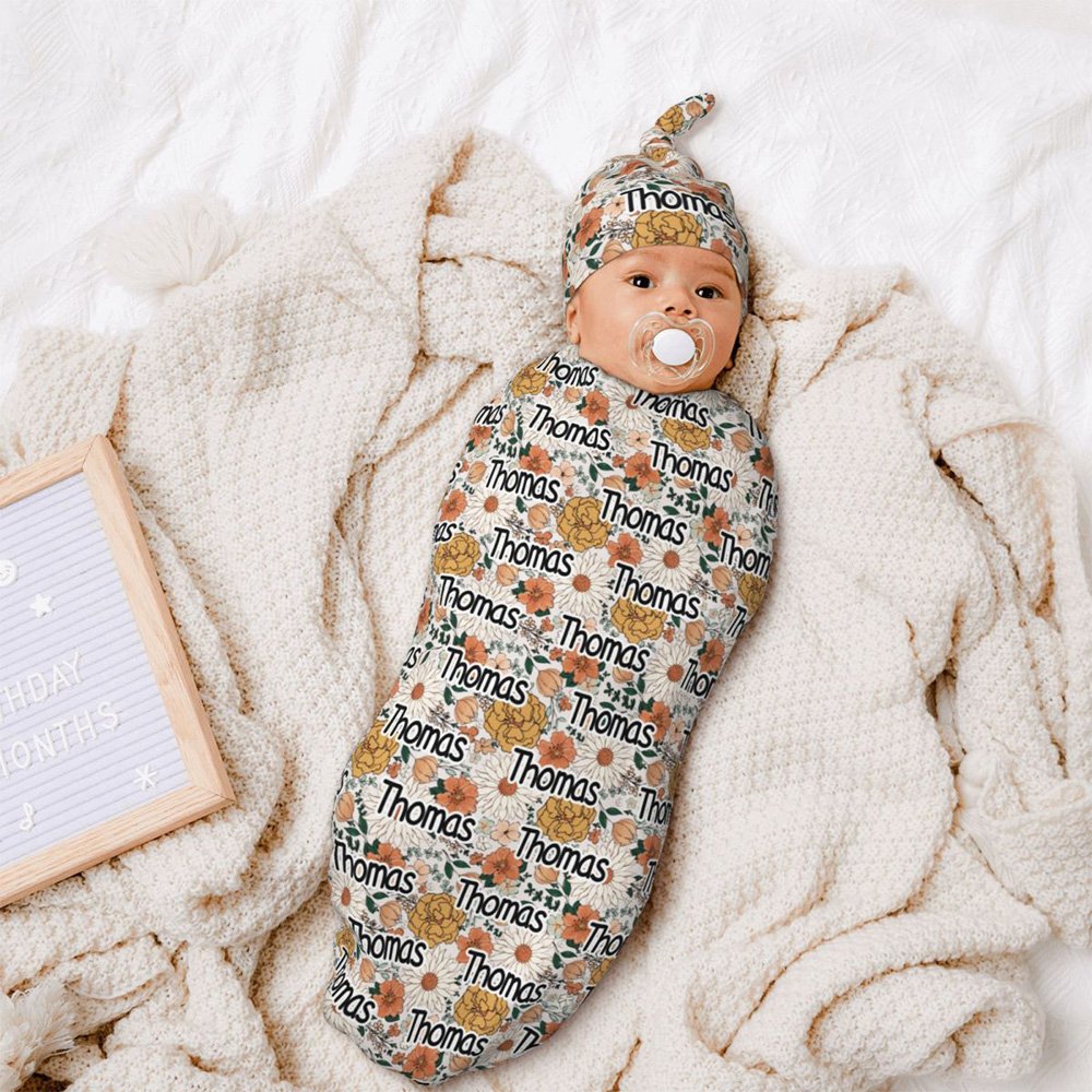 Our Personalised vintage floral swaddle set is the perfect choice. Whether it's for a baby registry, newborn photography, or any other special occasion, this swaddle set is sure to impress. Give the gift of style and comfort to both the baby and the mother.