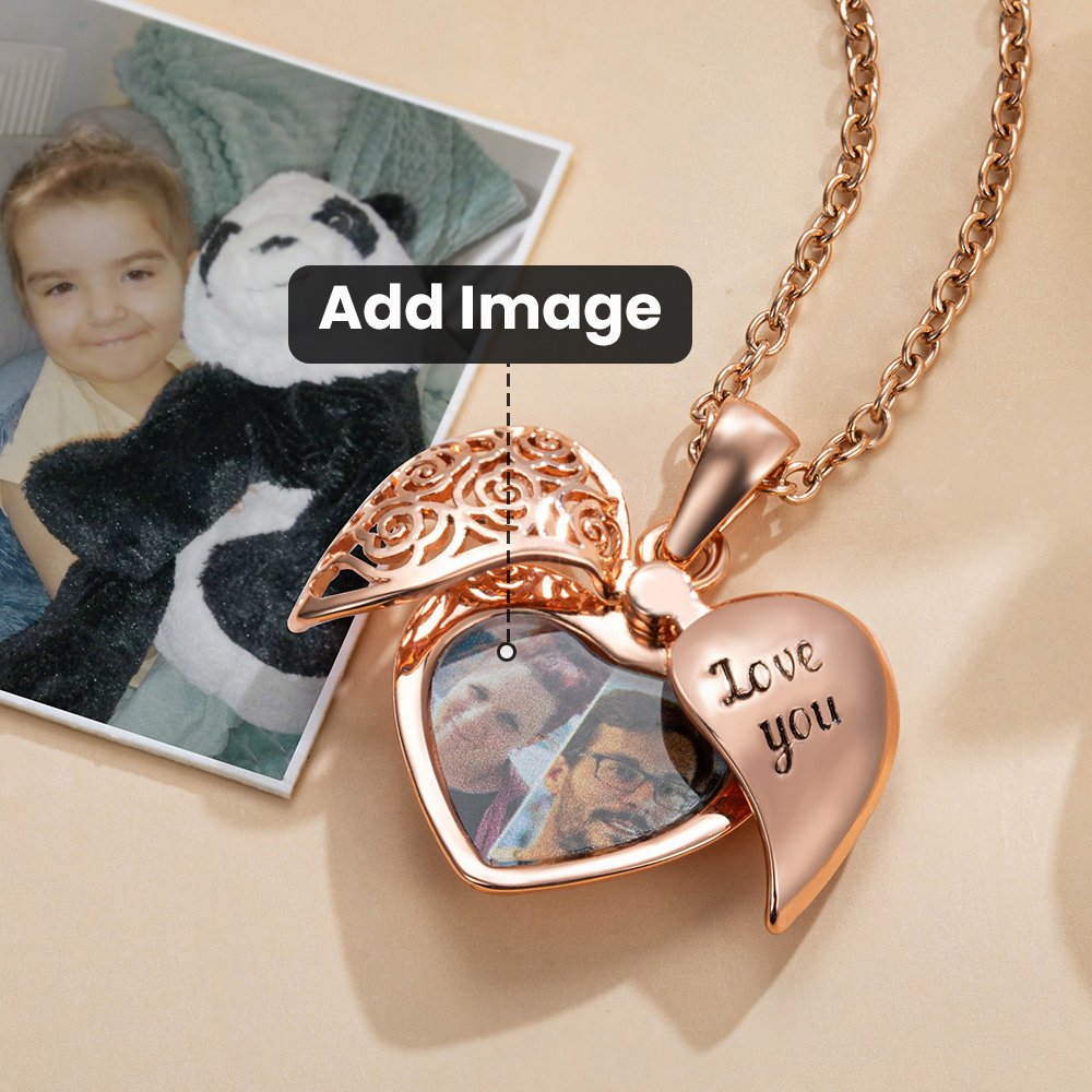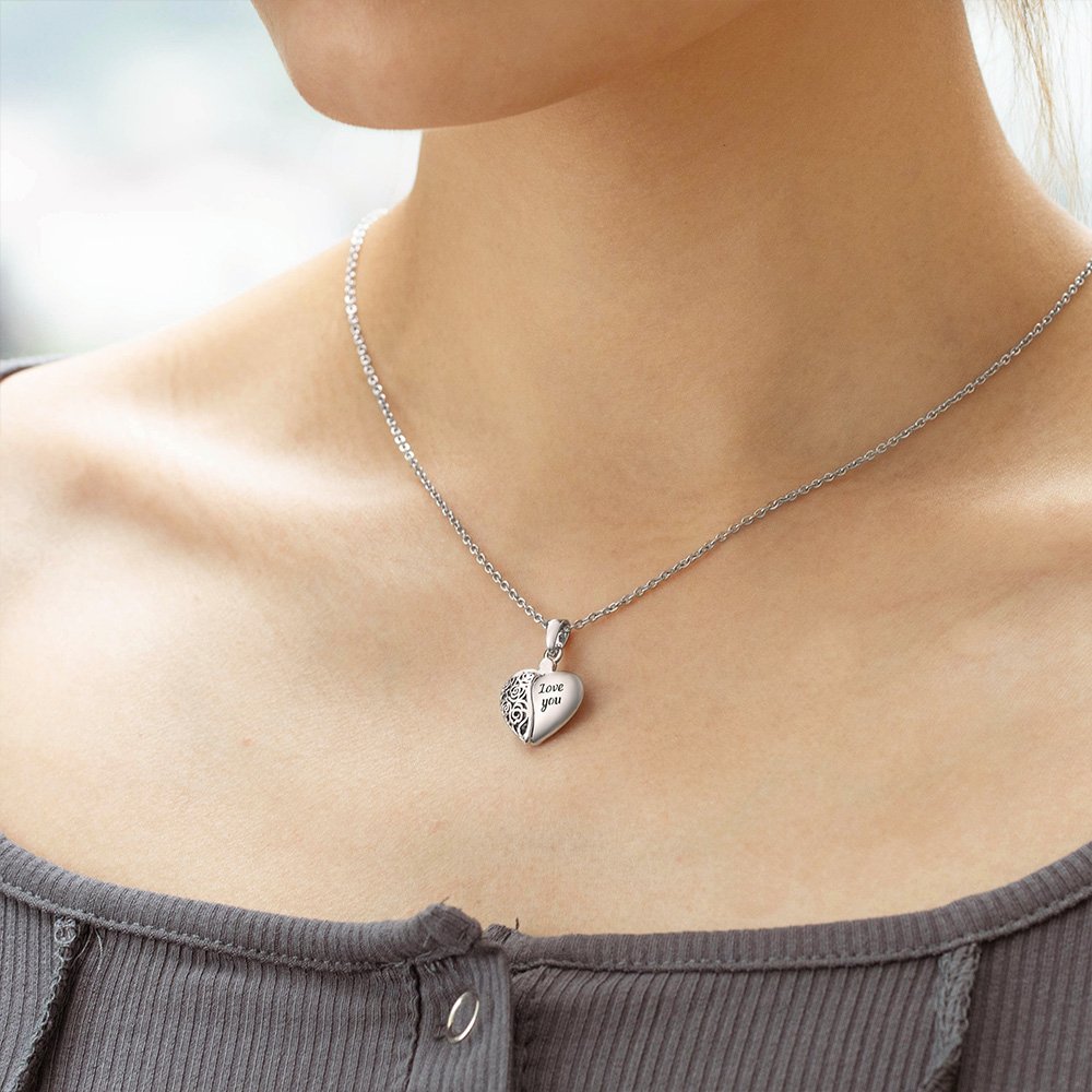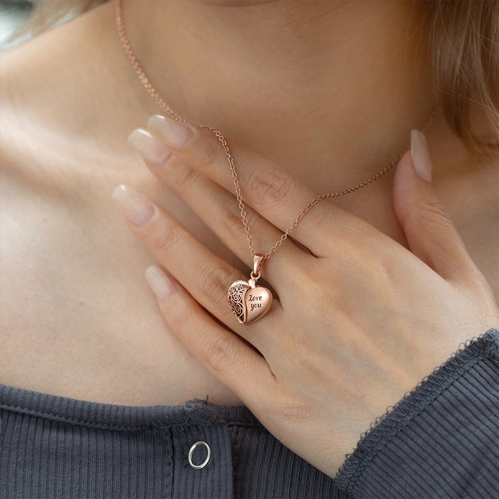 The design of this heart locket necklace is very ingenious, half engraved with "Love you" and half designed with a floral totem, which is unique, special, and pretty.