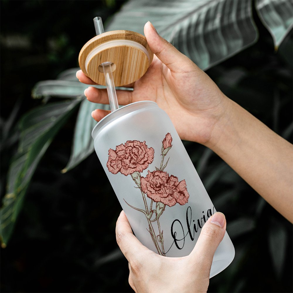 Frosted glass, 20oz capacity, quality assurance, the glass can be used to hold beverages, and can also be used as a beer mug. Customized service is provided, and the name of your loved one with a birth flower is engraved on the glass, which is absolutely clearly visible.
