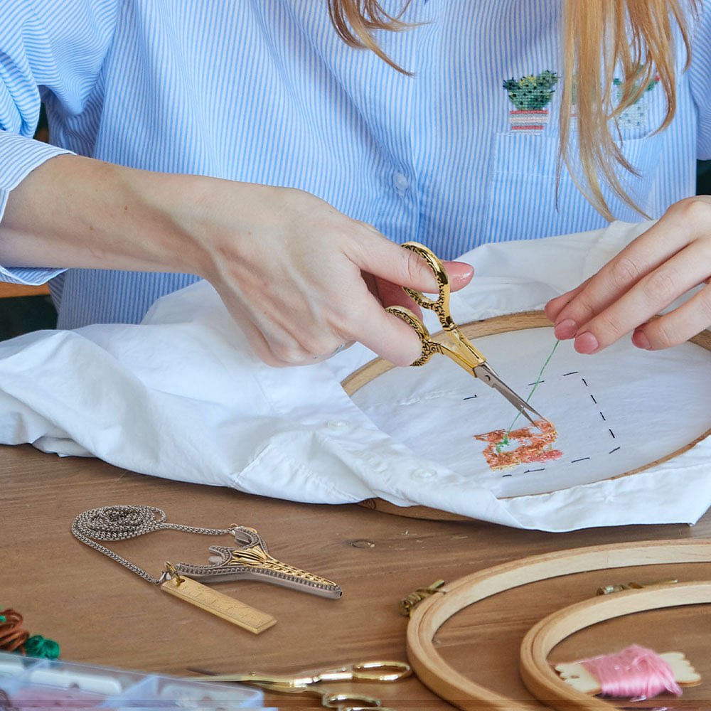 The exquisite tulip necklace case is beautiful, elegant, and luxurious. The scissors themselves are sharp and durable, and they can easily cut wires and ribbons. They can also be used to cut wool, felt, and other materials. They will not become blunt easily. The necklace can also be paired with a small ruler. It is the best choice for tailors and handicraft enthusiasts. Whether it is daily sewing or fine embroidery, it can do it perfectly. The length of this scissor necklace is moderate and can be easily hung around the waist. The scissors and the scissor case are designed to fit tightly and are not easy to fall off.