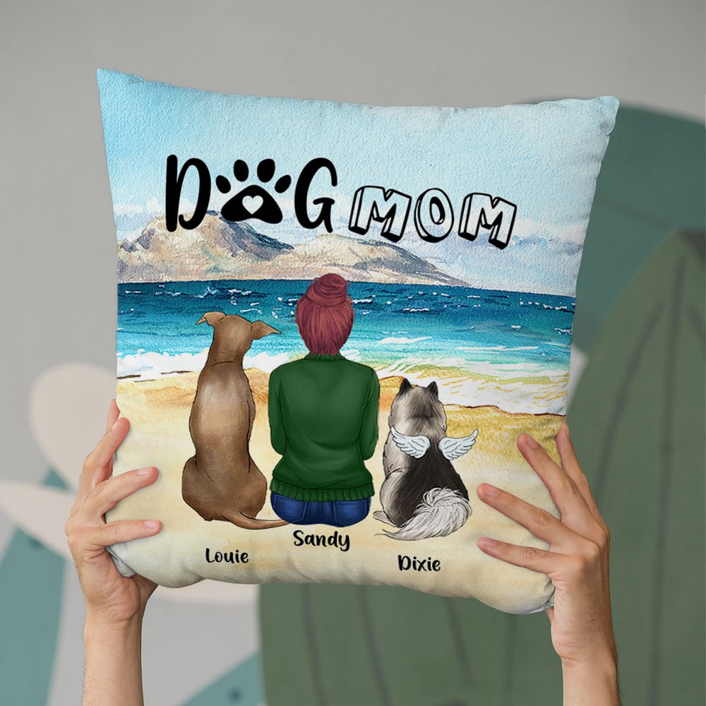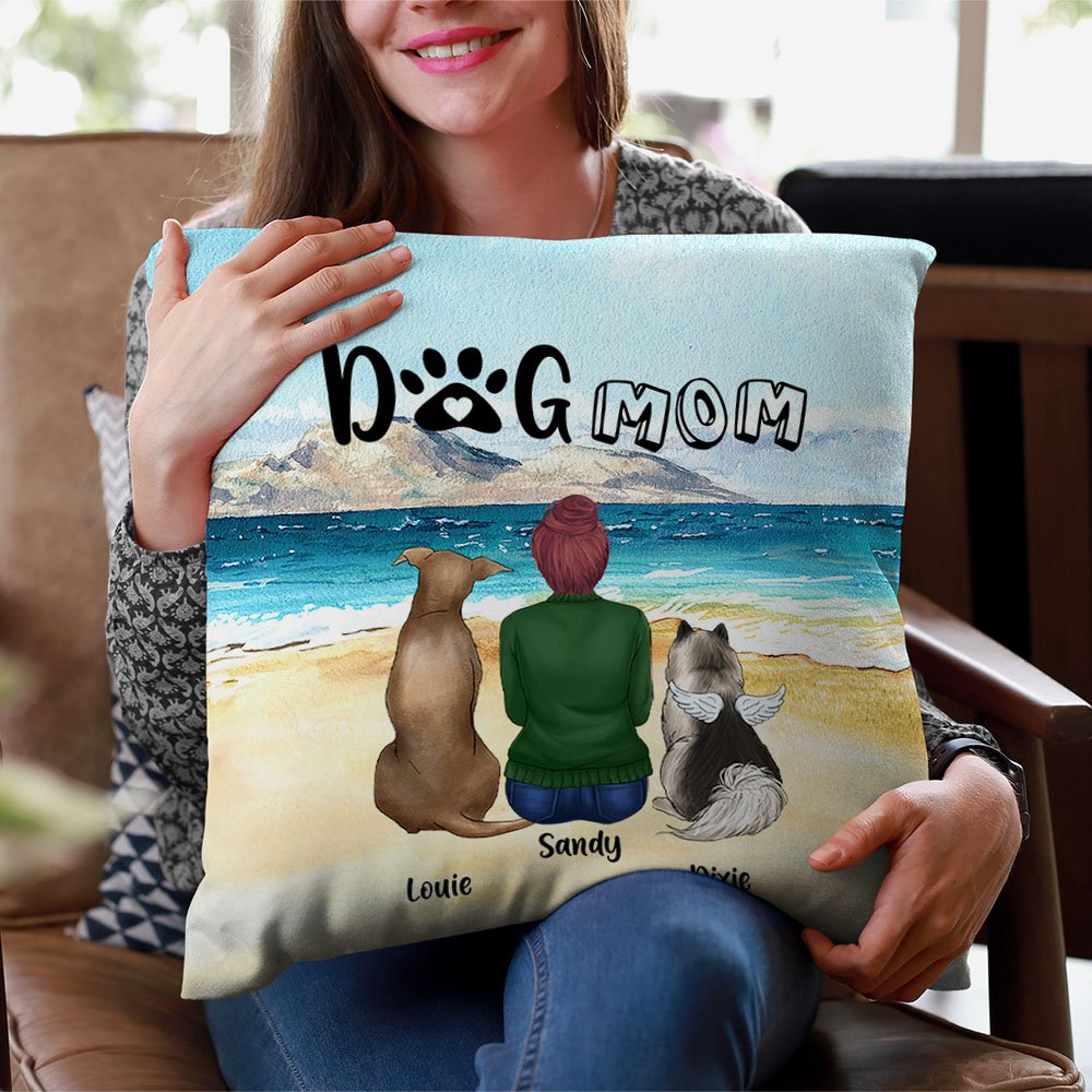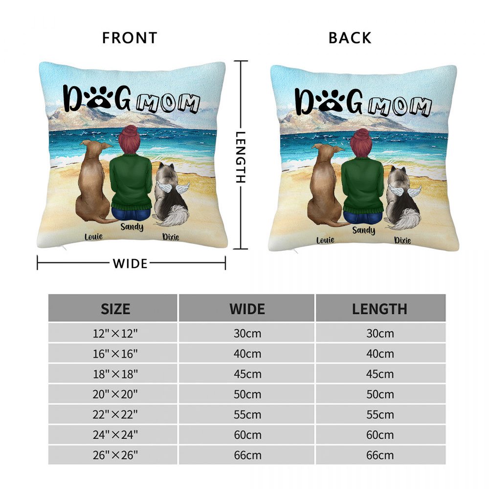 The unique design of this pillow features a charming scene, showcasing people and their dogs walking on the beach together. With the quote "Dog Mom/Dog Dad" and Personalised message, it becomes an extra special keepsake to celebrate people's undying love for their furry friends.