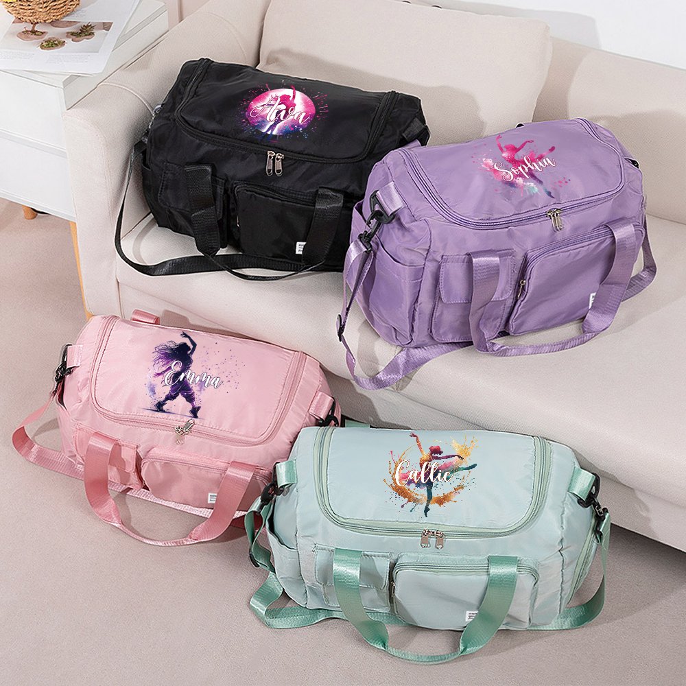This bag features stunning watercolors of ballerinas or street dancers, capturing the energy and grace of dance, making it the perfect accessory for any dancer.