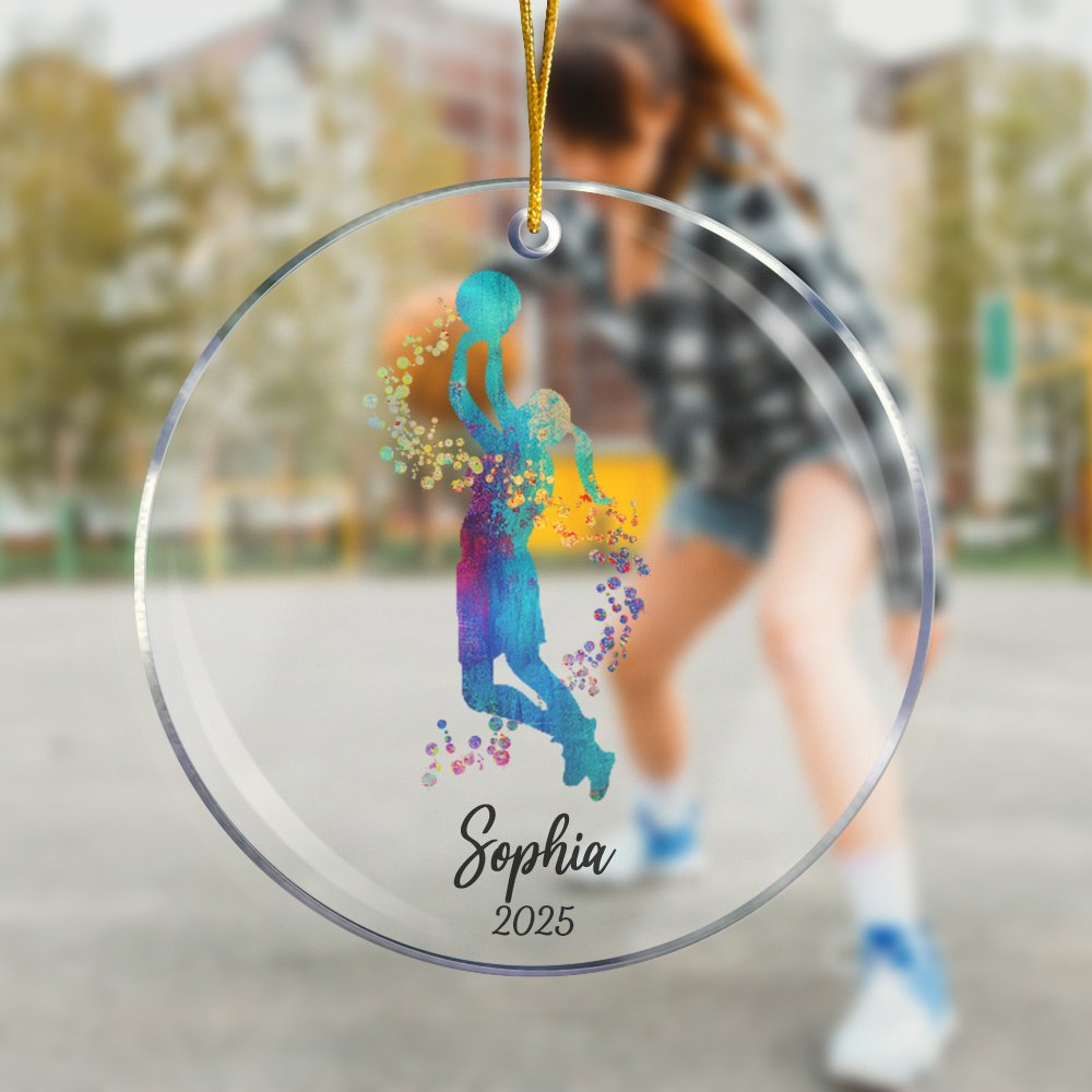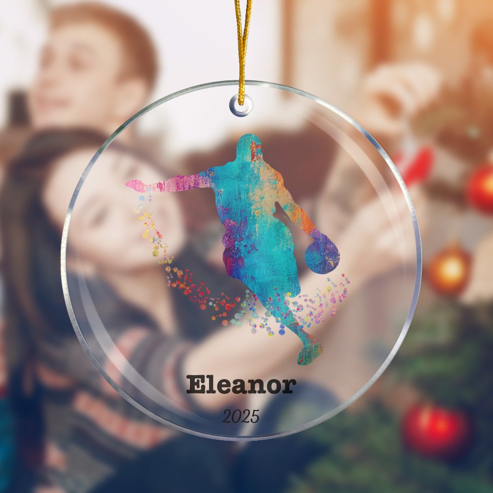 The main design of this ornament is a watercolour-style basketball player silhouette, which vividly shows the different styles of basketball and expresses passion and pride for basketball. Personalization options allow you to add your name and year, turning this ornament into a precious keepsake.