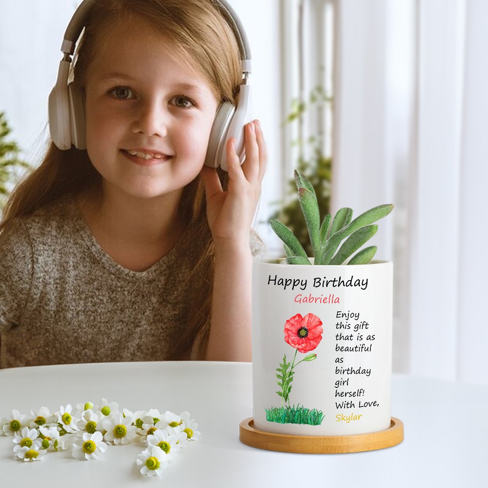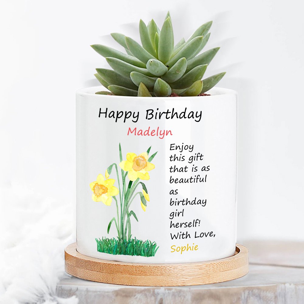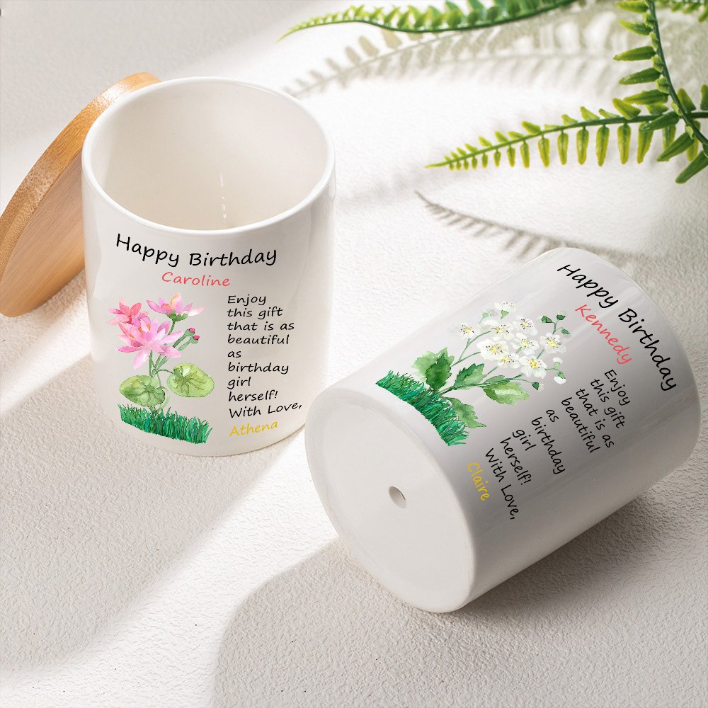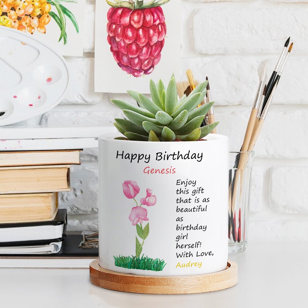 Whether it's Mother's Day, birthdays, anniversaries, or any occasion that celebrates the women in our lives, this pot is a perfect choice. Watercolor birthday flower patterns and sincere birthday blessings give the recipient a Personalised and precious gift that will be treasured for years to come.