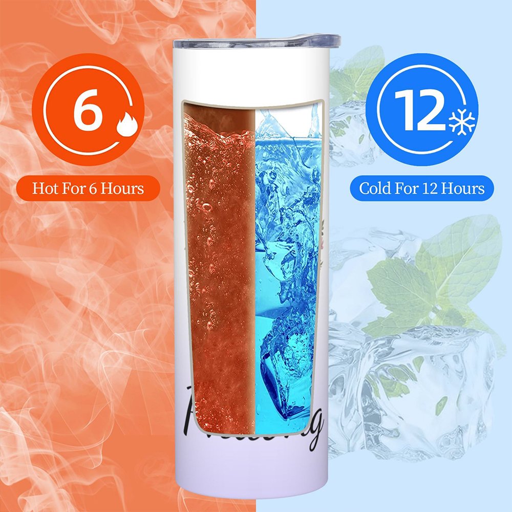 The 20oz tumbler is stylish but also practical and versatile. The matching straw allows her to enjoy her favorite hot or cold beverages with ease, while the silicone plug cup mouth and lid prevent spills and ensure convenient on-the-go use.
