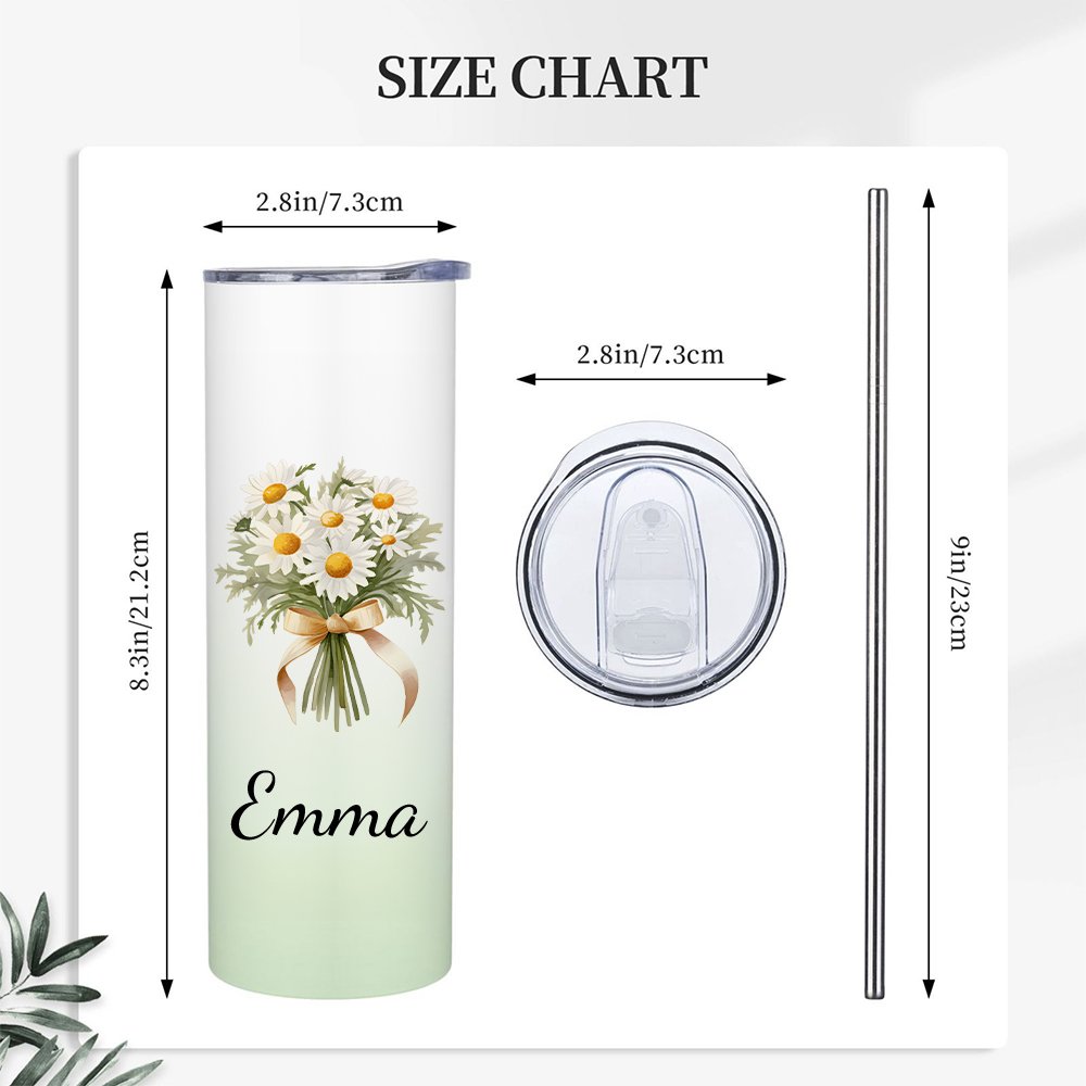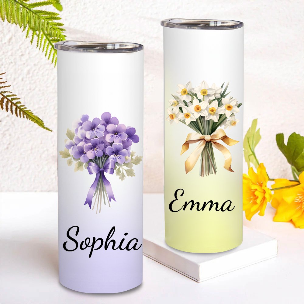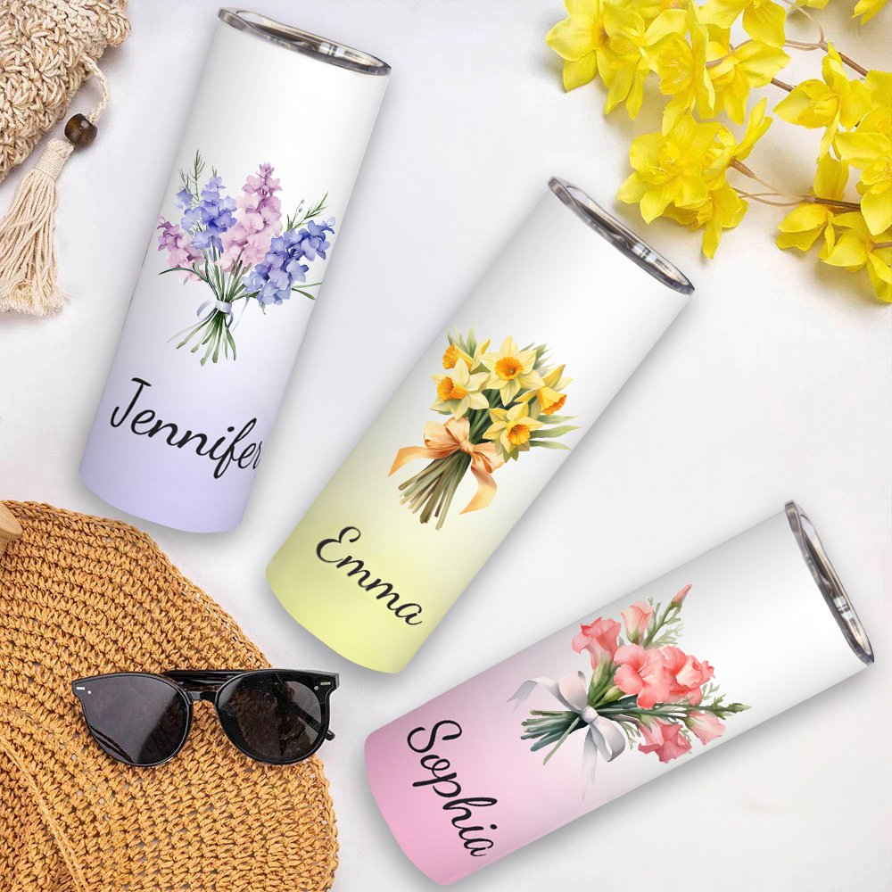 The birth flower tumbler is available in eight beautiful colors, offering a range of choices to suit her style and preferences. This tumbler incorporates a unique birthday bouquet pattern so that you can choose according to your birth month and recipient's name on the tumbler to make it more Personalised.