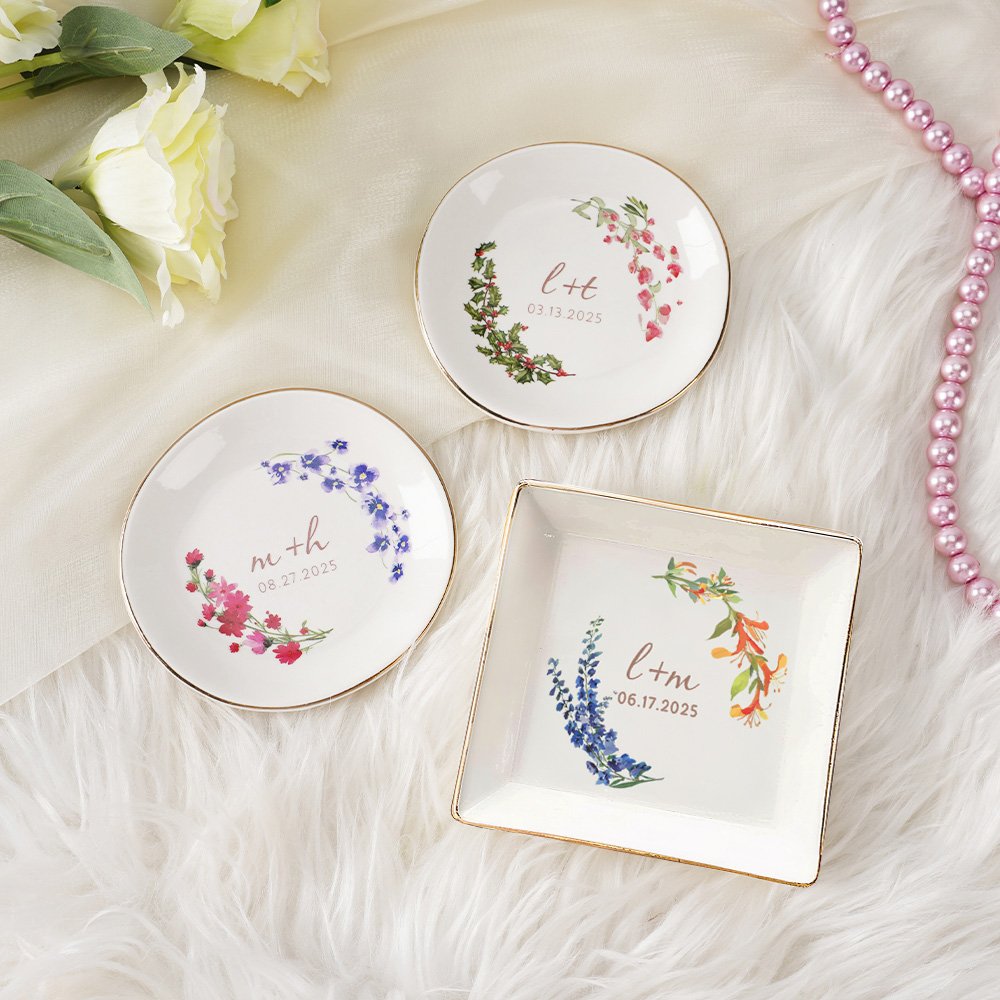 This trinket dish features a beautiful watercolor birth flower design that can be Personalised with initials and a date, making it a truly meaningful gift for any wife or girlfriend.
