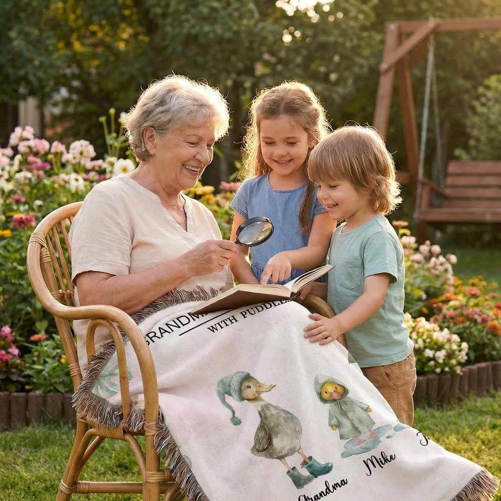 Personalised Watercolor Duck Flock Soft Throw Blanket with Names and Title Mother's Day Birthday Gift for Grandma Family