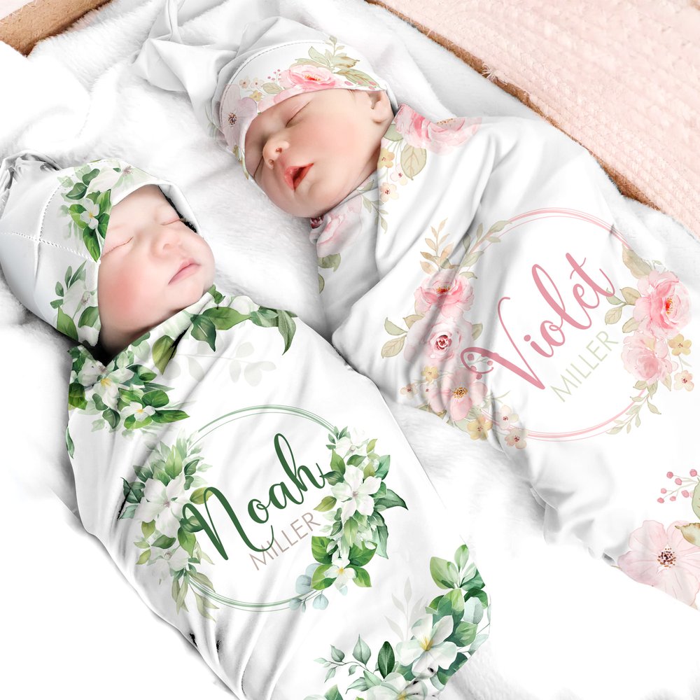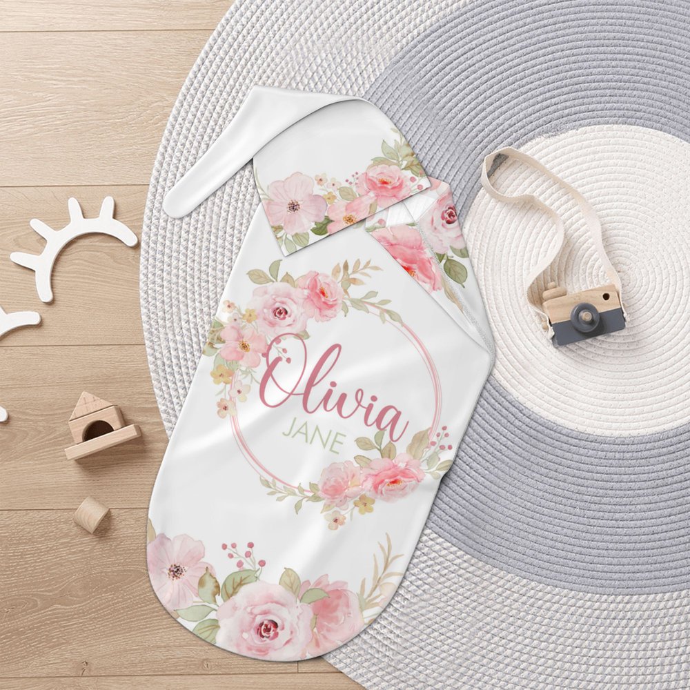 Our set is an ideal gift for newborns and their families. Whether for a baby shower, first-month celebration, or any special occasion, the Personalised floral design and name add unique emotional value to this gift. Each time new parents see this lovingly crafted swaddle, they will feel your heartfelt wishes and care for them and their baby, creating treasured memories.