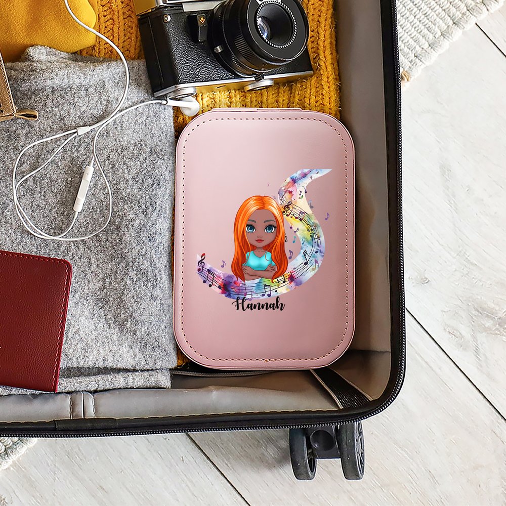The front is printed with a cartoon-style female image, with staves, music symbols, and a colourful background, making the jewellery box full of art and fun. The name and cartoon image can be customized according to your needs, so that every owner can feel the unique charm.