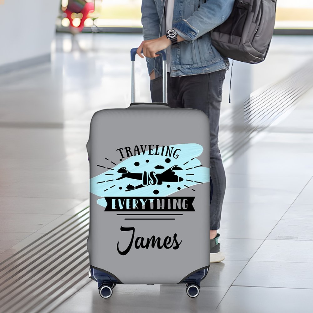 Personalised Watercolour Travel Theme Design Luggage Protective Cover Fits 18-32 Inches Suitcase with Name Birthday Gift for Friends Family